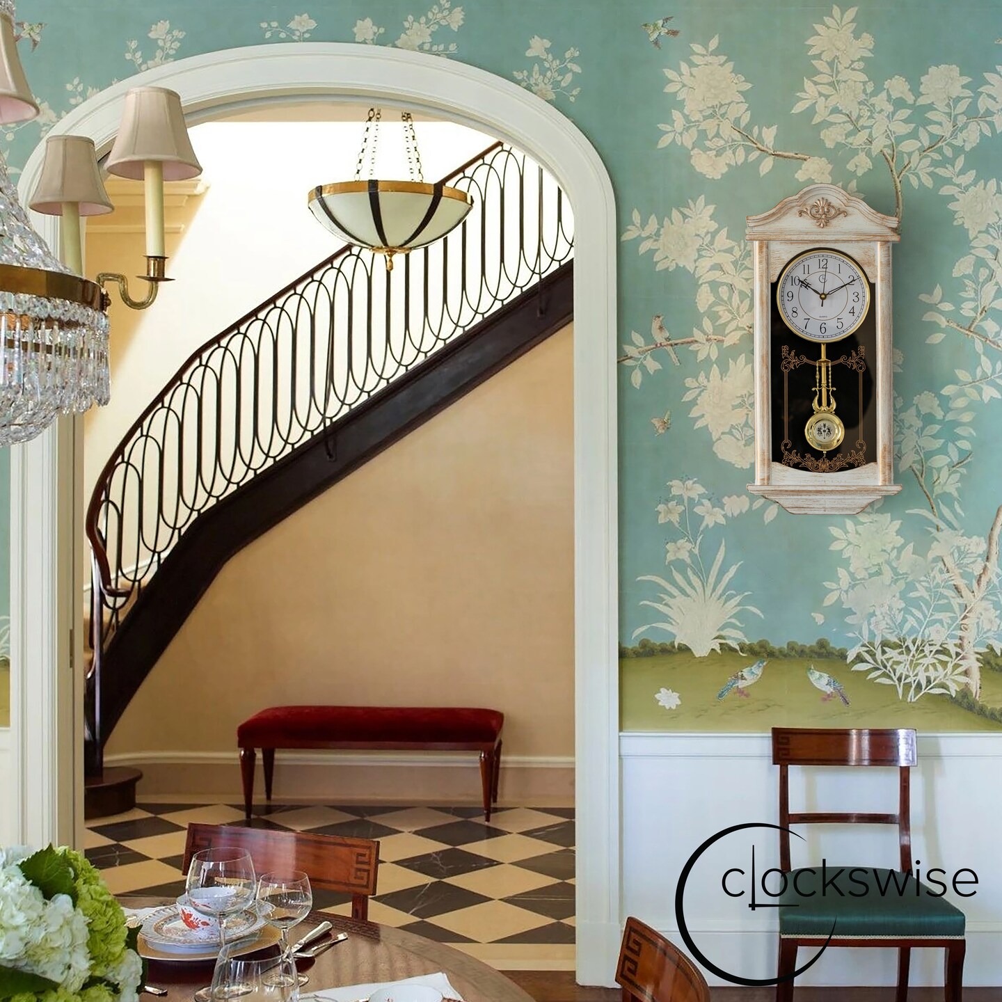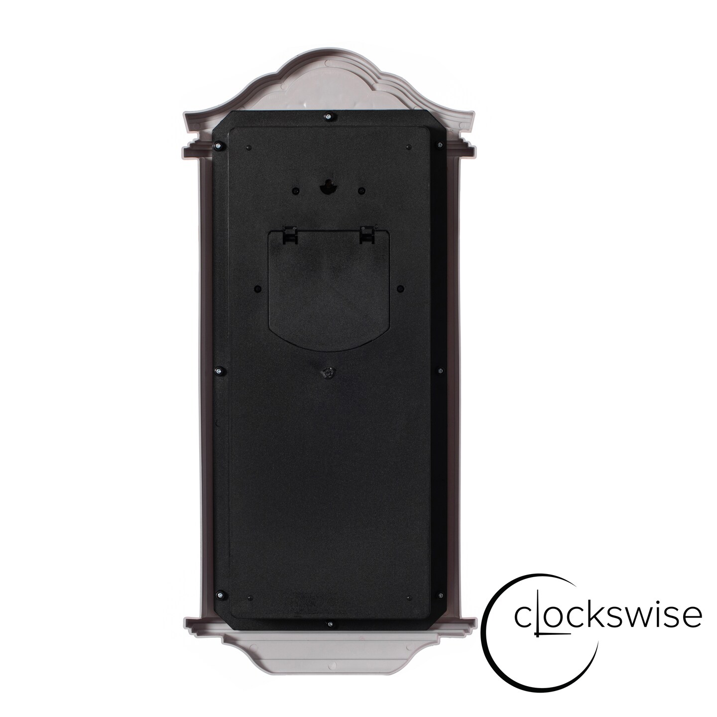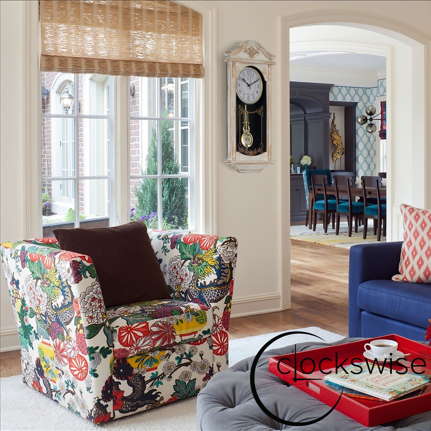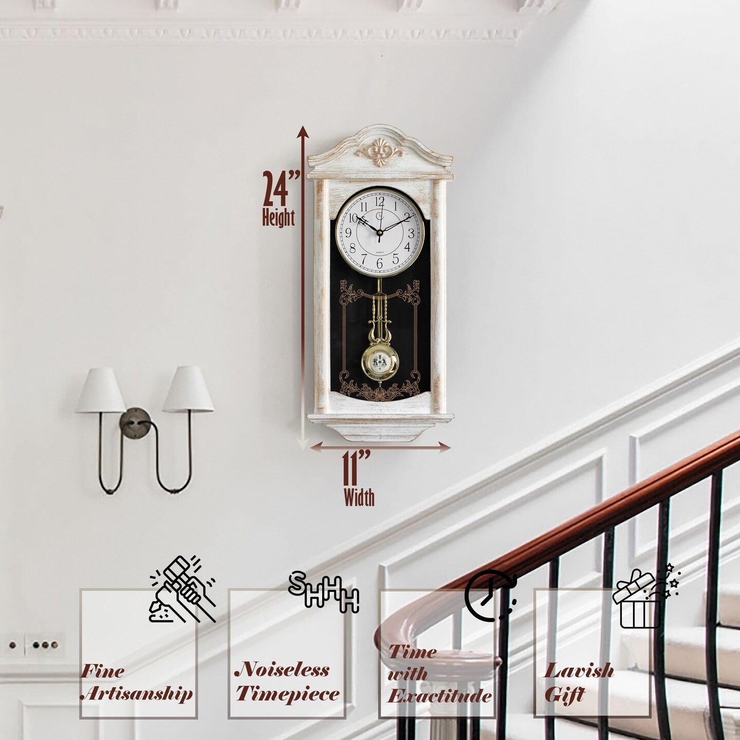 Clockswise Vintage Grandfather Wood-Looking Plastic Pendulum Decorative Battery Operated Wall Clock Brown, for Office, Home Decor, Living Room, Kitchen, or Dining Room