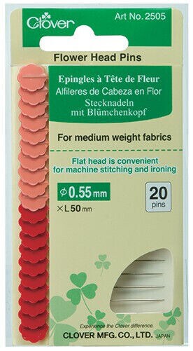 Clover Flower Head Pink Fine Pins for Medium Weight Fabrics 20 pc pack