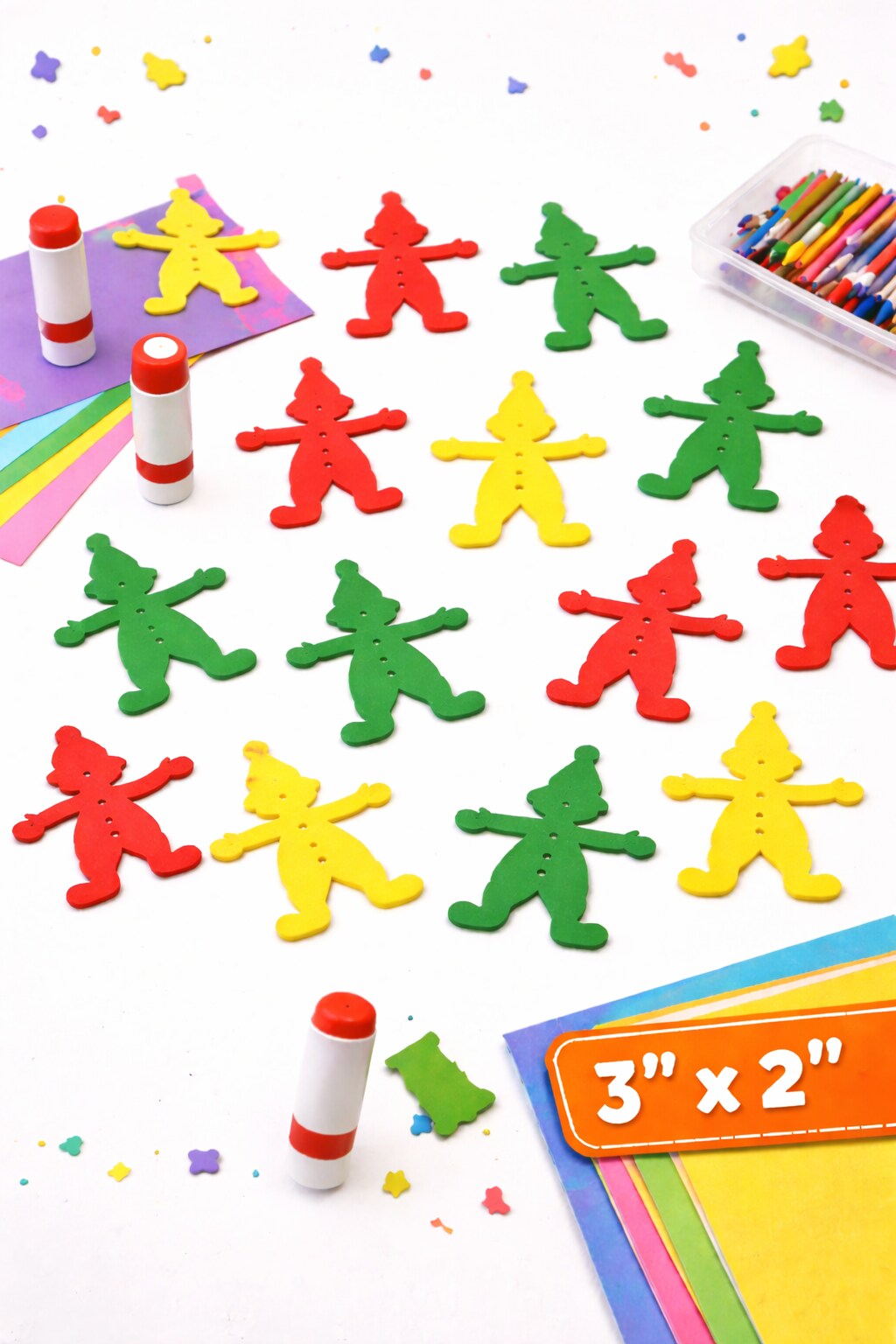 Clown Foam Shapes 3" x 2" – 60pcs Colorful Foam Cutouts for Kids Crafts, Classroom & Party Projects