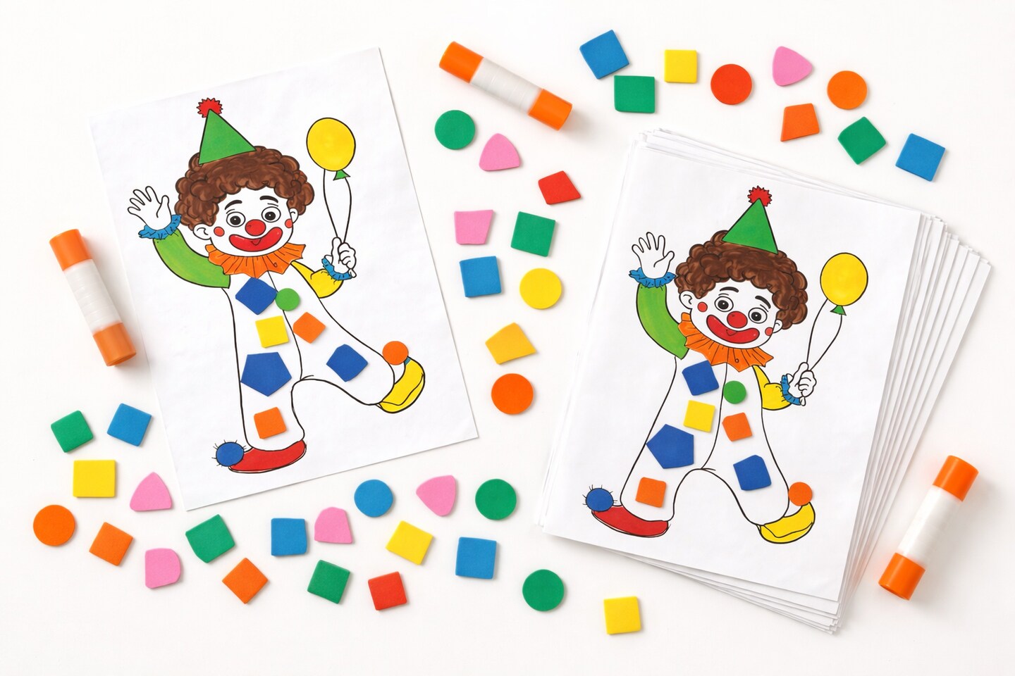 Clown with Geometric Foam Shapes Craft Kit – 20 Piece Kids Classroom Activity Set