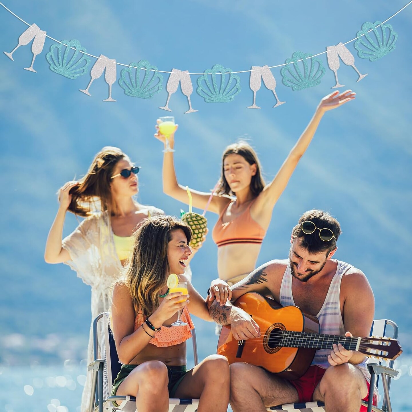Coastal Bachelorette Party Decorations - Champagne Seashell Garland