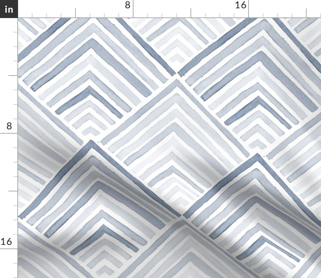 Coastal Geometric Modern Blue Monochrome Lines Neutral Beach Sea Chevron Custom Printed Fabric by Spoonflower Various Fabrics by the Yard or Fat Quarter