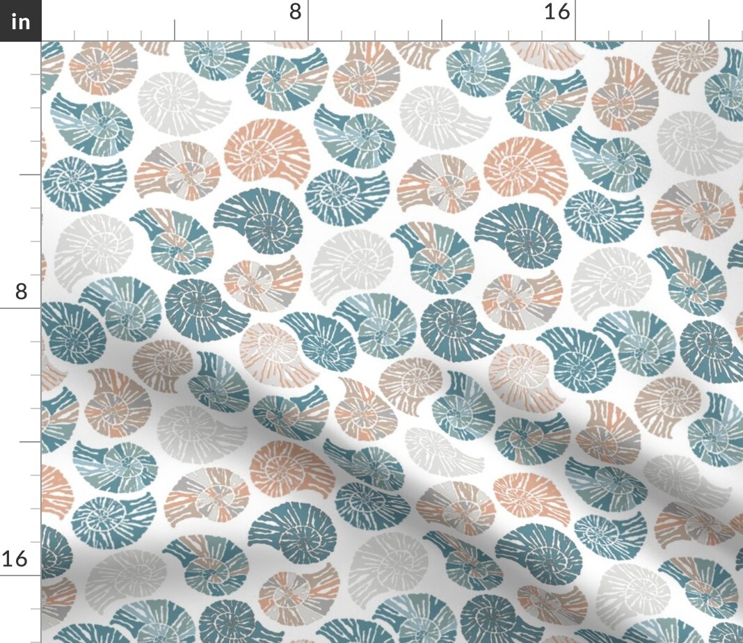 Coastal Shells Beach Blue Terra Cotta Seashells Nautical Custom Printed Fabric by Spoonflower Various Fabrics by the Yard or Fat Quarter
