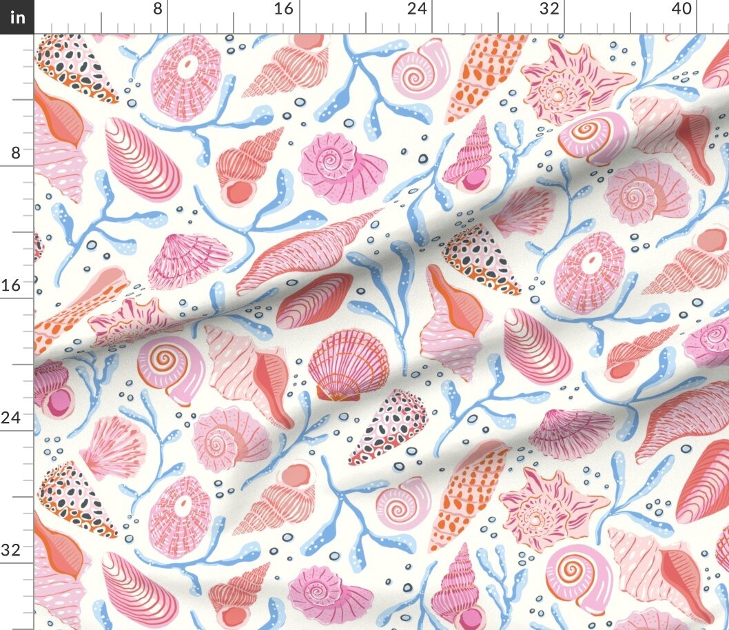 Coastal Shells Coral Pink Beach Summer Nautical Maritime Jumbo Scale Custom Printed Fabric by Spoonflower Various Fabrics by the Yard or Fat Quarter