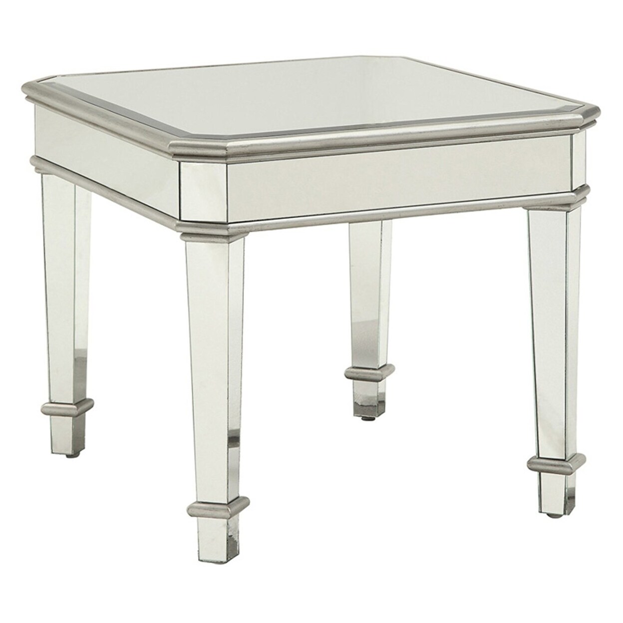 Coaster Mirrored Transitional Style Wooden End Table With Beveled Edges, Silver- Saltoro Sherpi