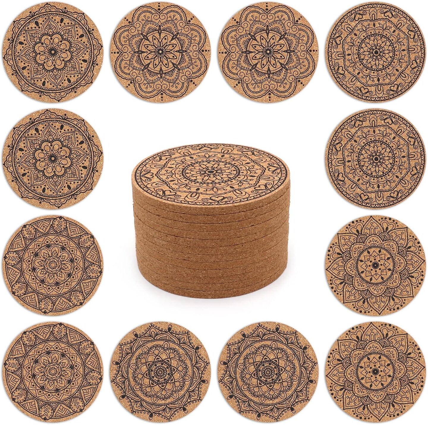 Coasters for Drinks 12 pcs Absorbent Cork Coasters with Flower Pattern Housewarming Gifts for New Home Present for Friends, Living Room Decor, Apartment Decor