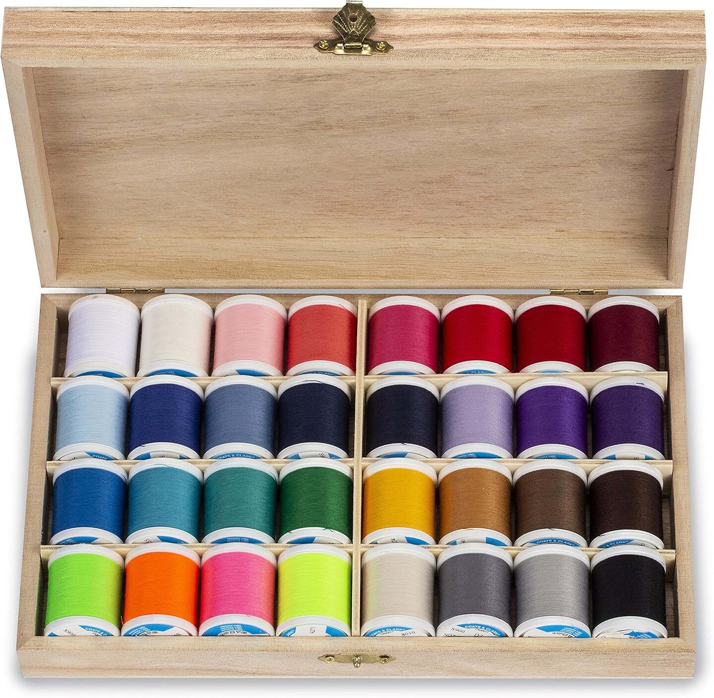 Coats & Clark Sewing Thread & Sew Happy Wooden Gift Box - 32 Spools
