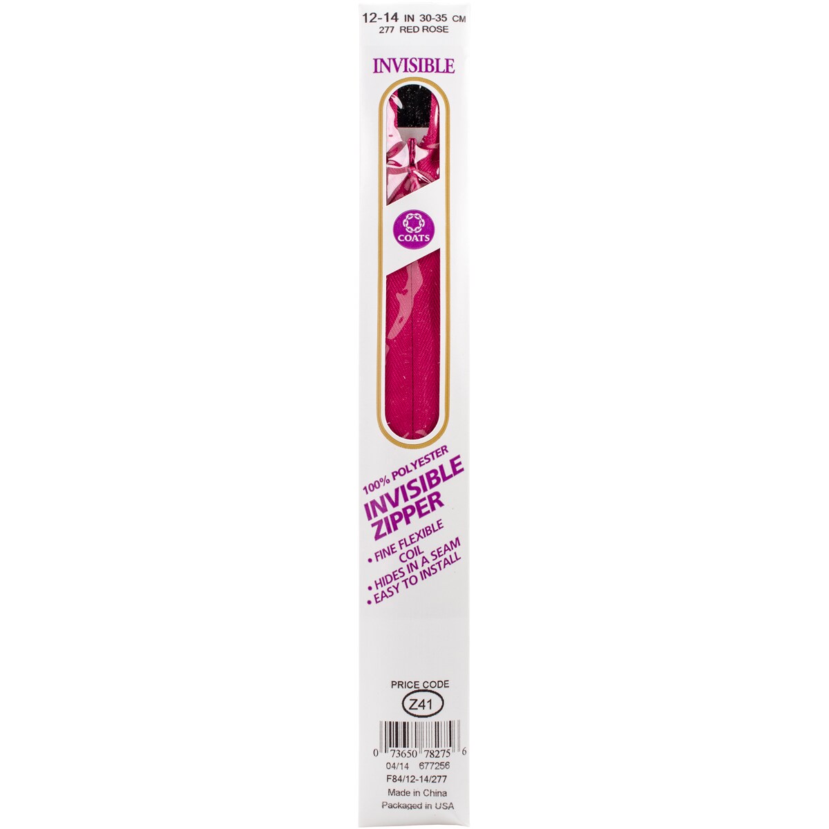 Coats Invisible Zipper 12" To 14"-Red Rose