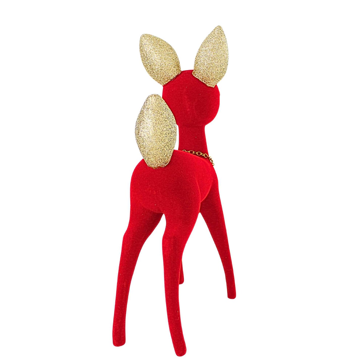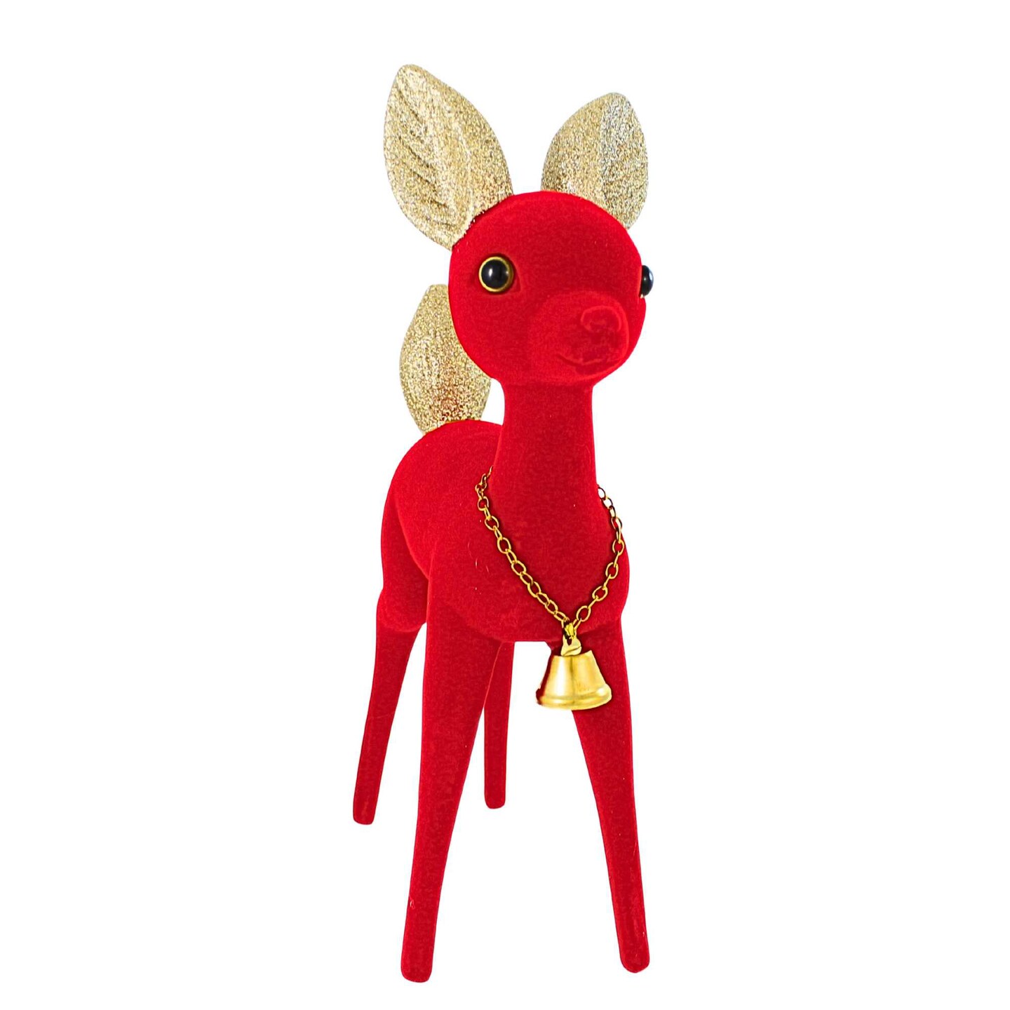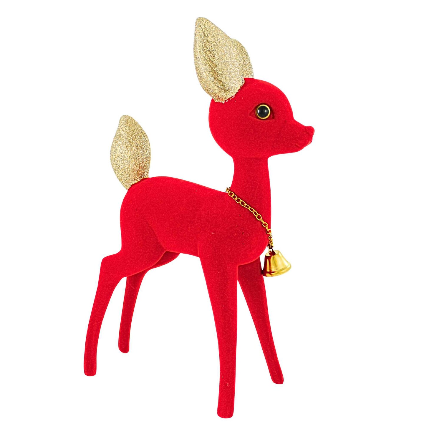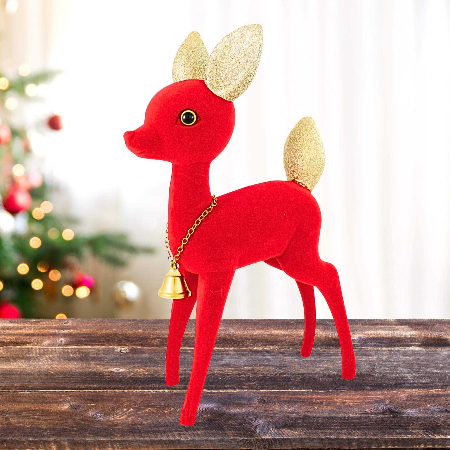 Cody Foster 12.0 Inch Kitschy Flocked Deer Red Christmas Figurine , Christmas Decor Gold Ear Tail Reindeer