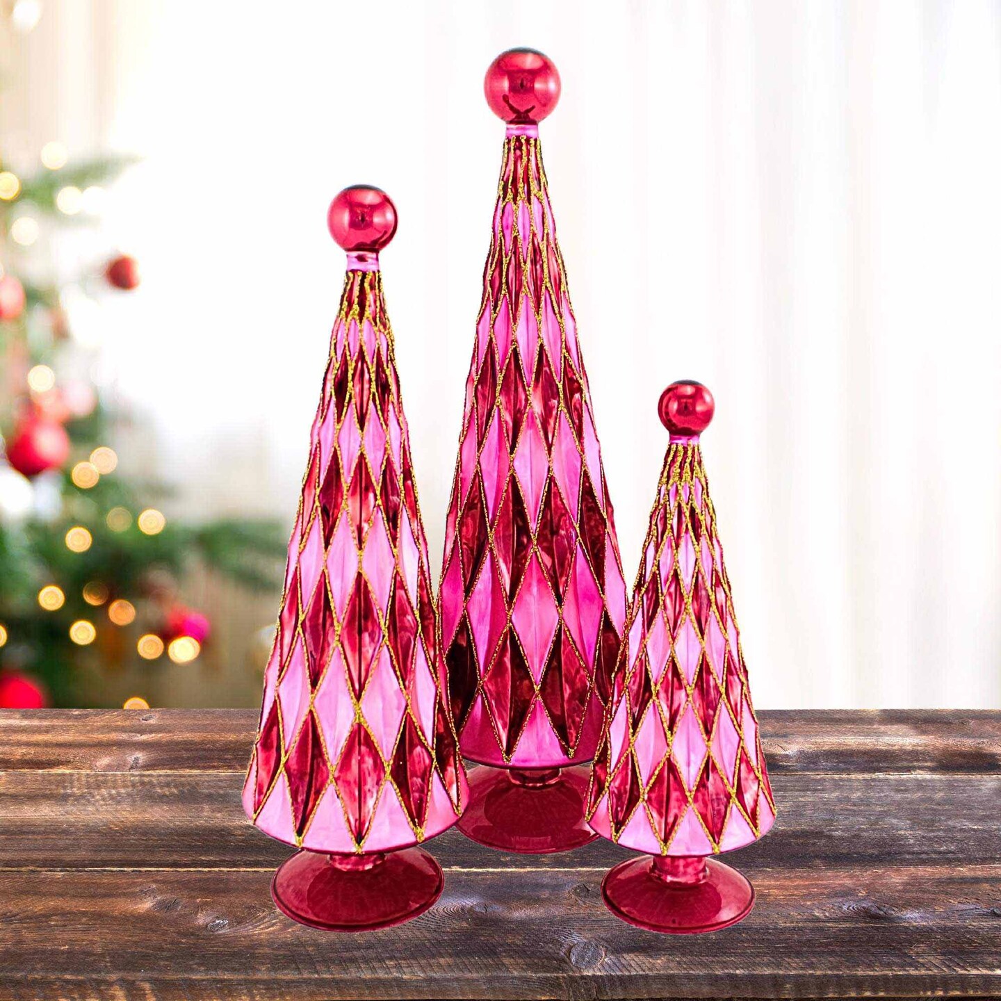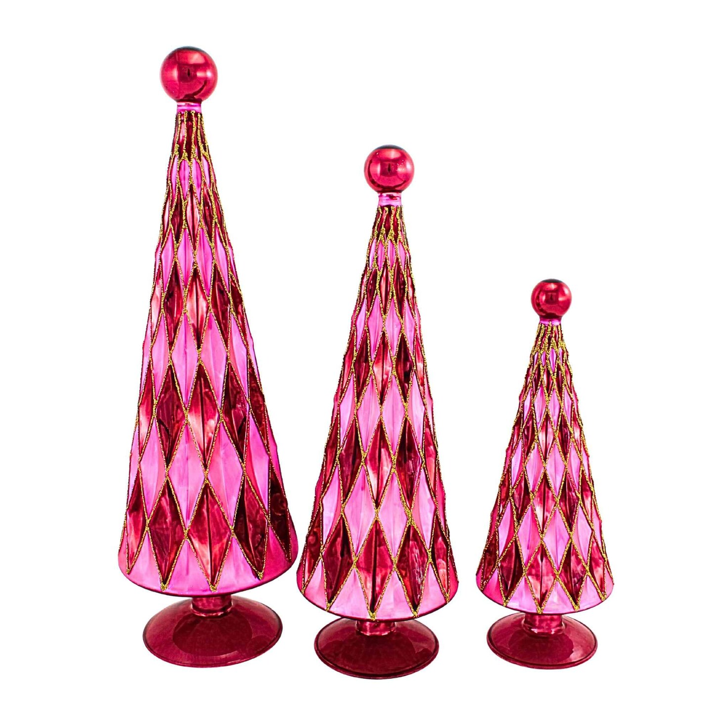 Cody Foster 14.5 Inch Diamond Trees Burgundy Pink Christmas Decorative Tree Set , Mid Century Style Reflective