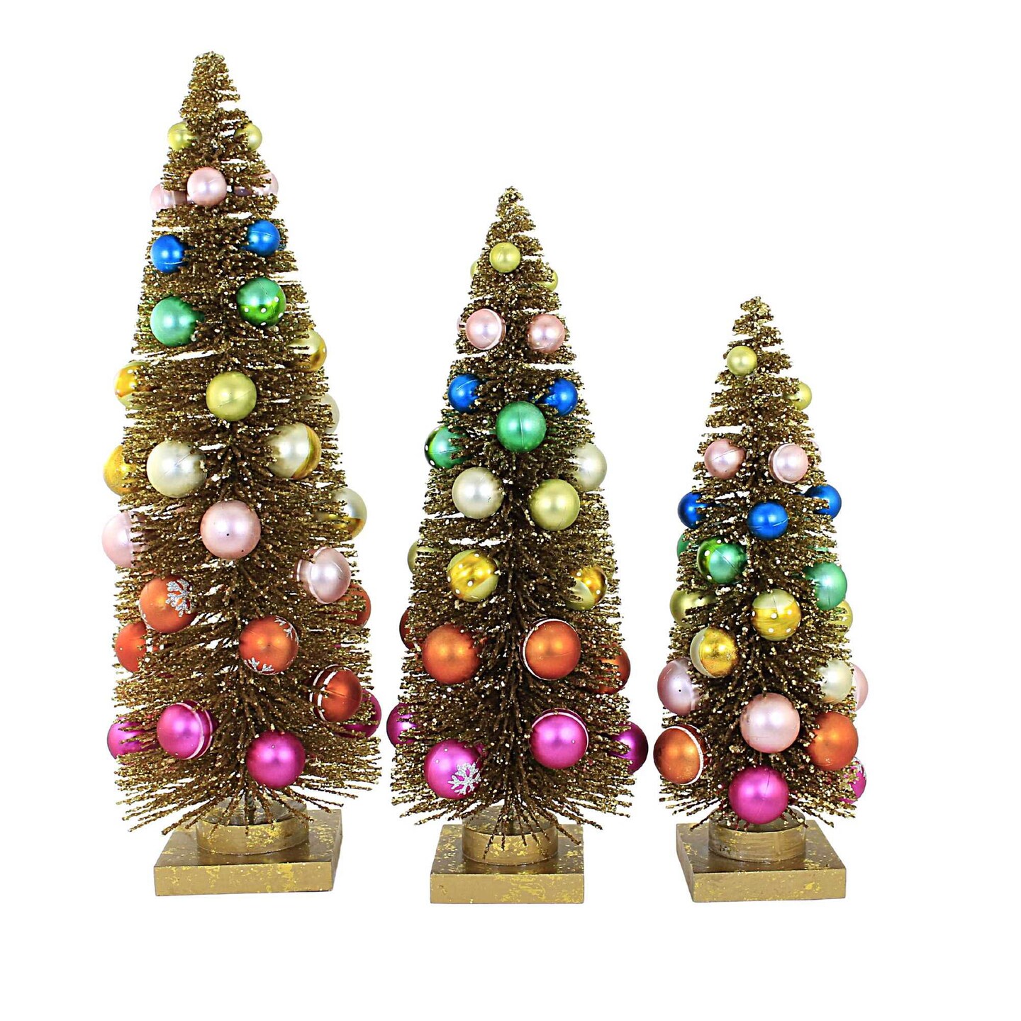 Cody Foster 16.5 Inch Gold Rainbow Trees Christmas Decorative Tree Set , Putz Village Retro