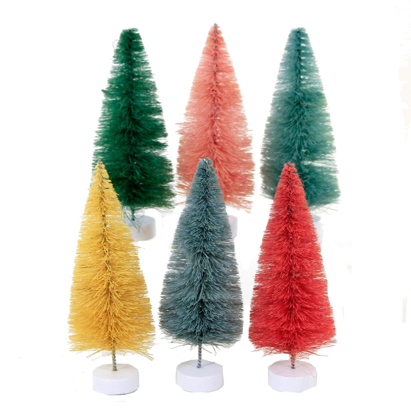 Cody Foster 4.0 Inch Large Brights Trees Set 12 Everyday Decorative Tree Set , Christmas Easter Bottle Brush Village Decor Decorate Rainbow