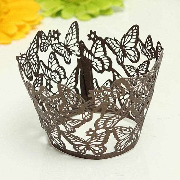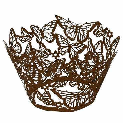 Coffee Brown Butterfly Lace Cupcake Wrappers & Liners | 25 PC Set