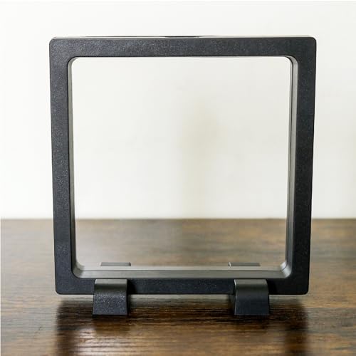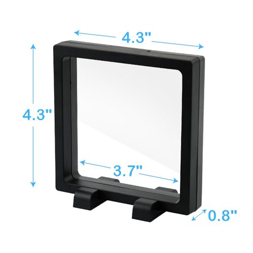 Coin Display Frame, Clear 3D Floating Holder, Small Shadow Box for Medal, AA Medallions, Jewelry, Challenge Coins, Black, 4.3"x4.3"x0.8"