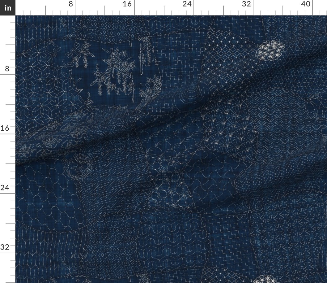 Collection Sashiko Japanese Traditional Quilt Origami Dark Blue Indigo White Sewing Custom Printed Fabric by Spoonflower Various Fabrics by the Yard or Fat Quarter