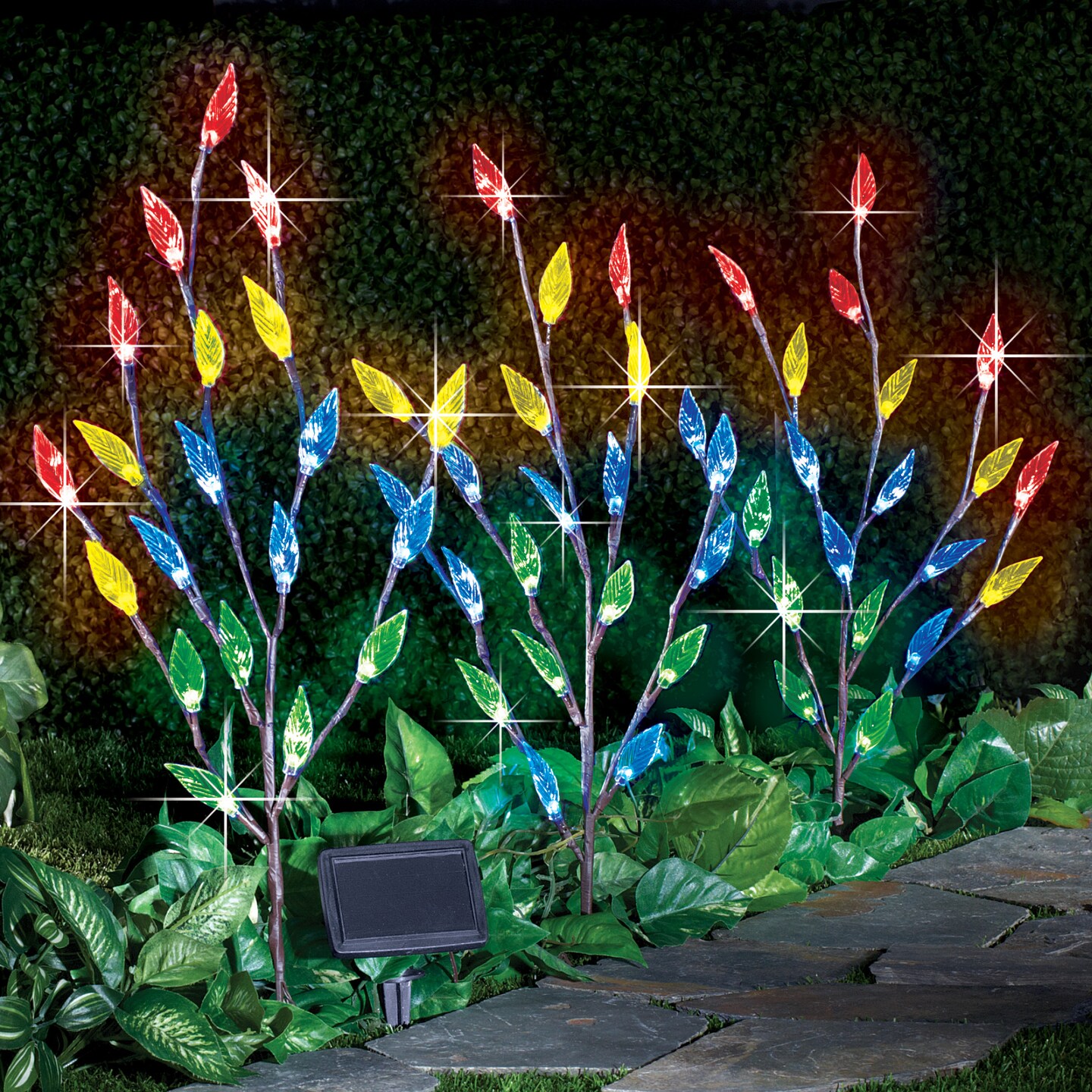 Collections Etc Bright Leaf Branch Solar Garden Lights with Adjustable Branches - Set of 3, Outdoor Decorative Accents