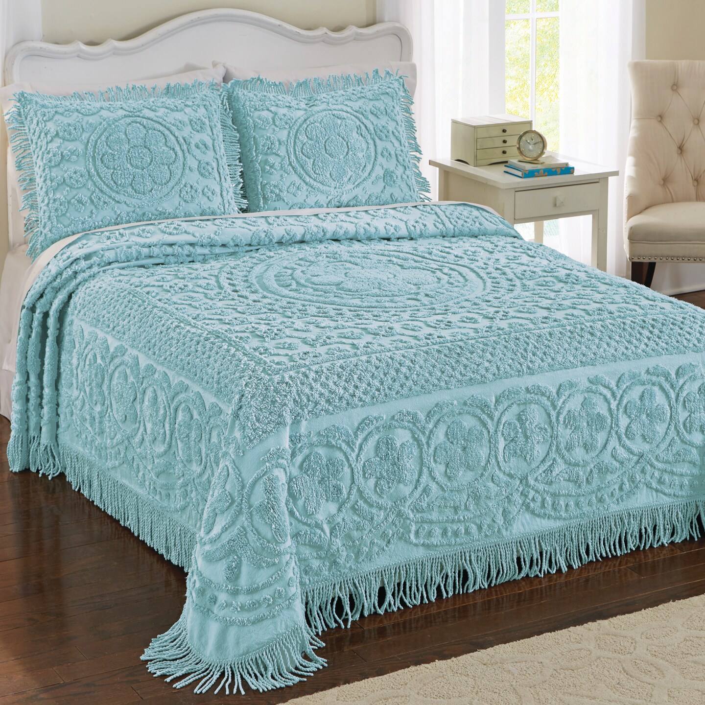 Collections Etc Calista Chenille Lightweight Bedspread with Fringe Border