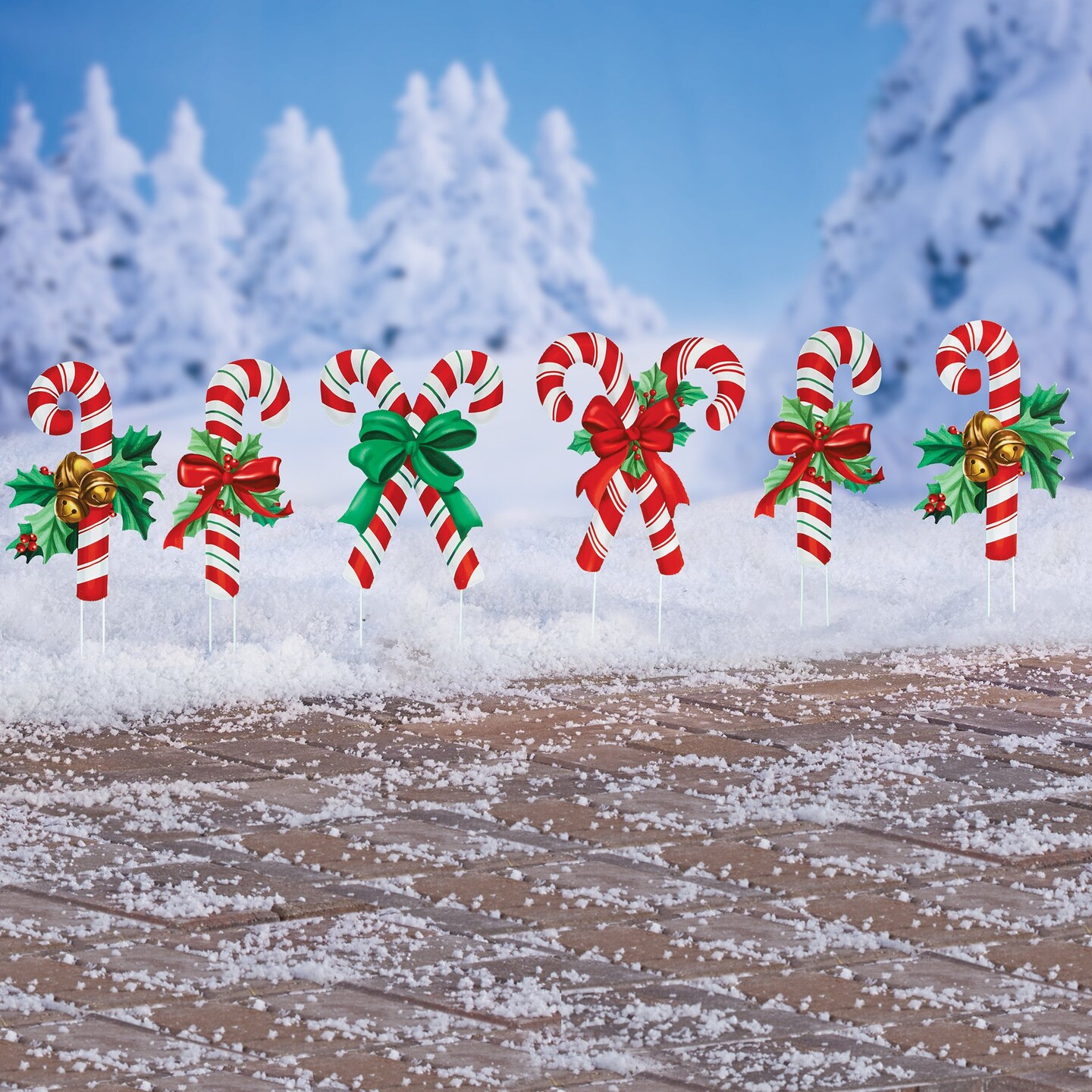Collections Etc Candy Cane Outdoor Christmas Yard Stakes - Set of 6