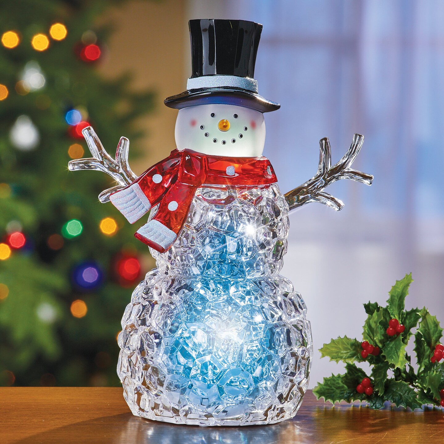 Collections Etc Color-Changing LED Lighted Tabletop Snowman Décor