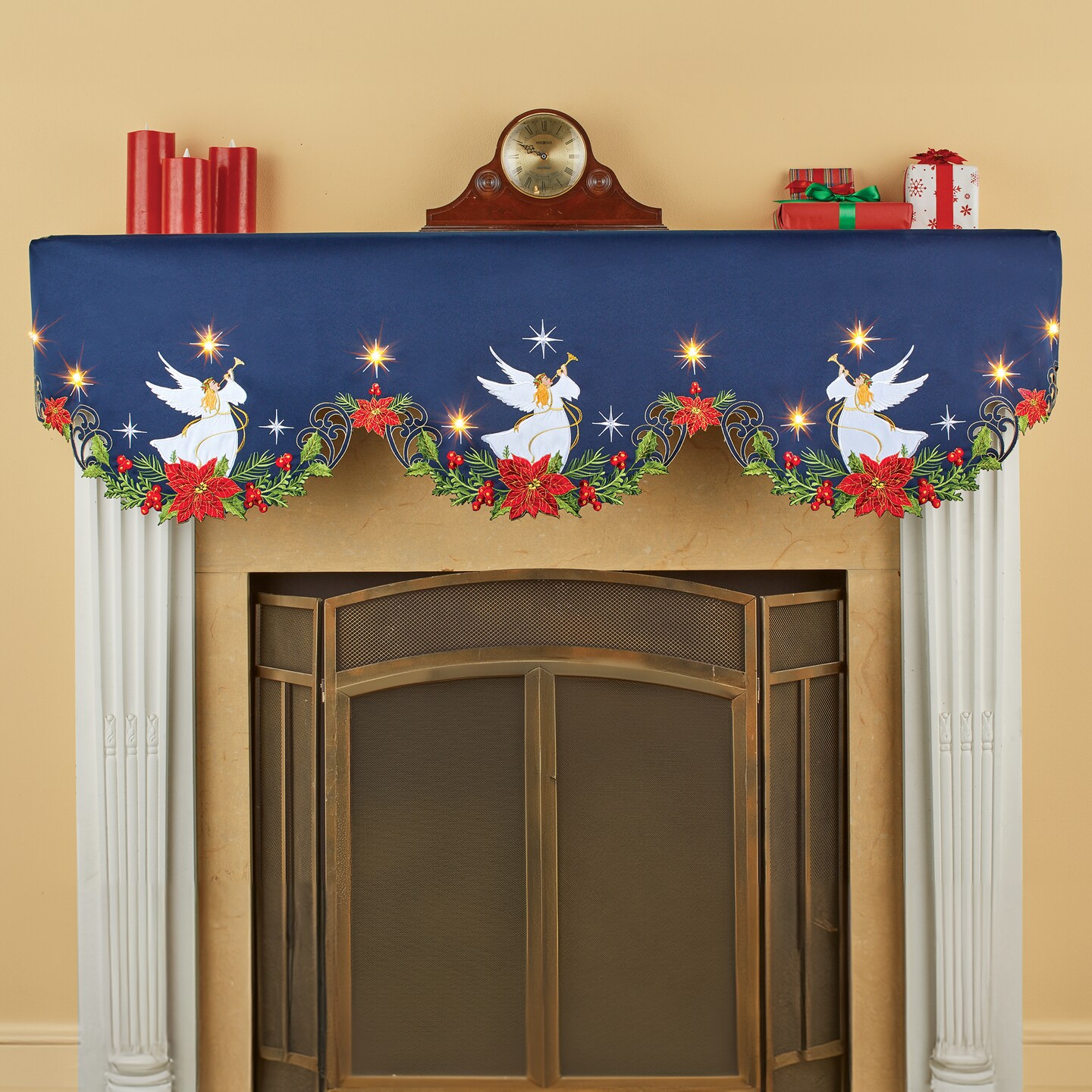 Collections Etc Holiday Angel Navy Blue Embroidered Mantel Scarf with LED Lights
