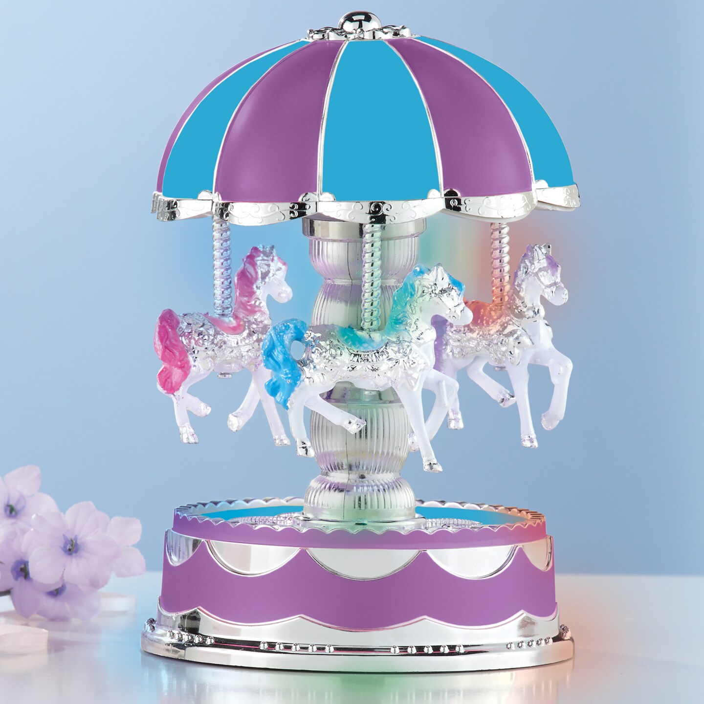 Collections Etc LED Lighted Colorful Musical Carousel Toy