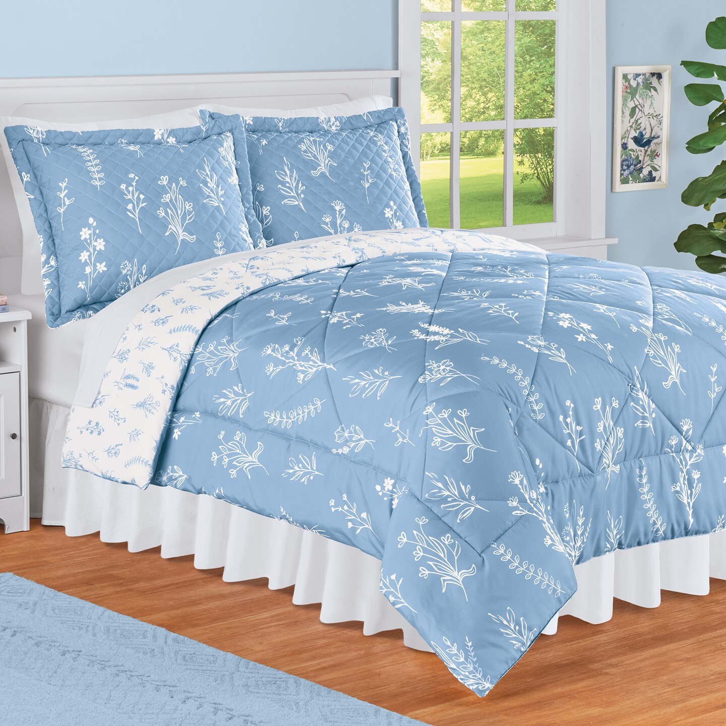 Collections Etc Reversible Floral and Leaf Pattern 3-Piece Comforter Set