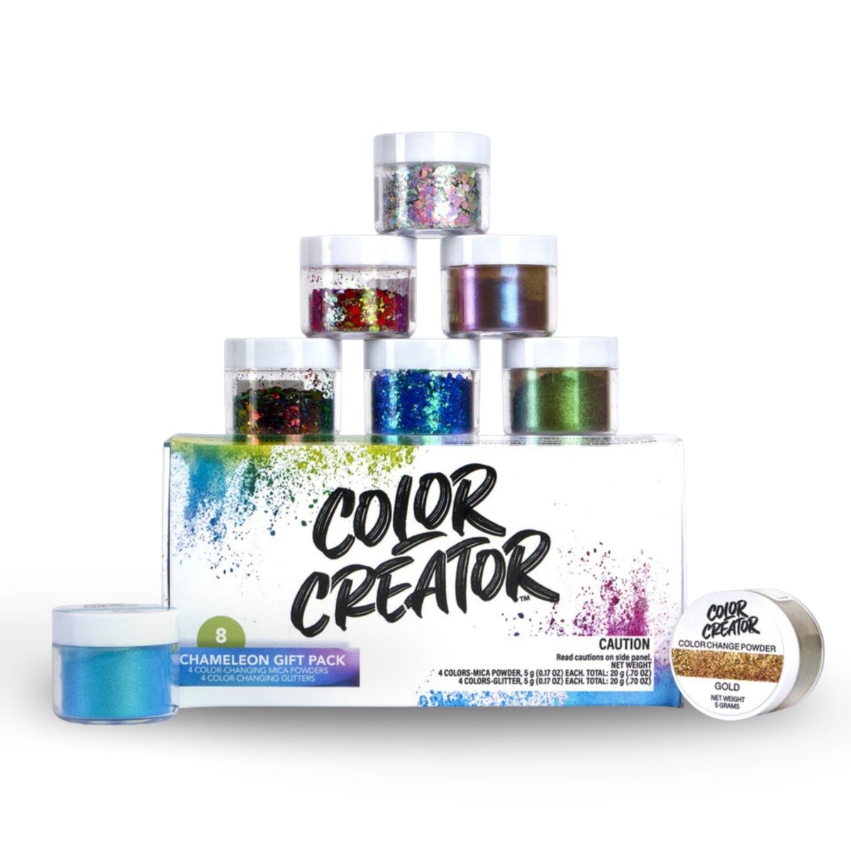 Color Creator Colossal Chameleon Color Change Pack 8 Piece Set - (4 color changing micas, 4 color changing glitters)