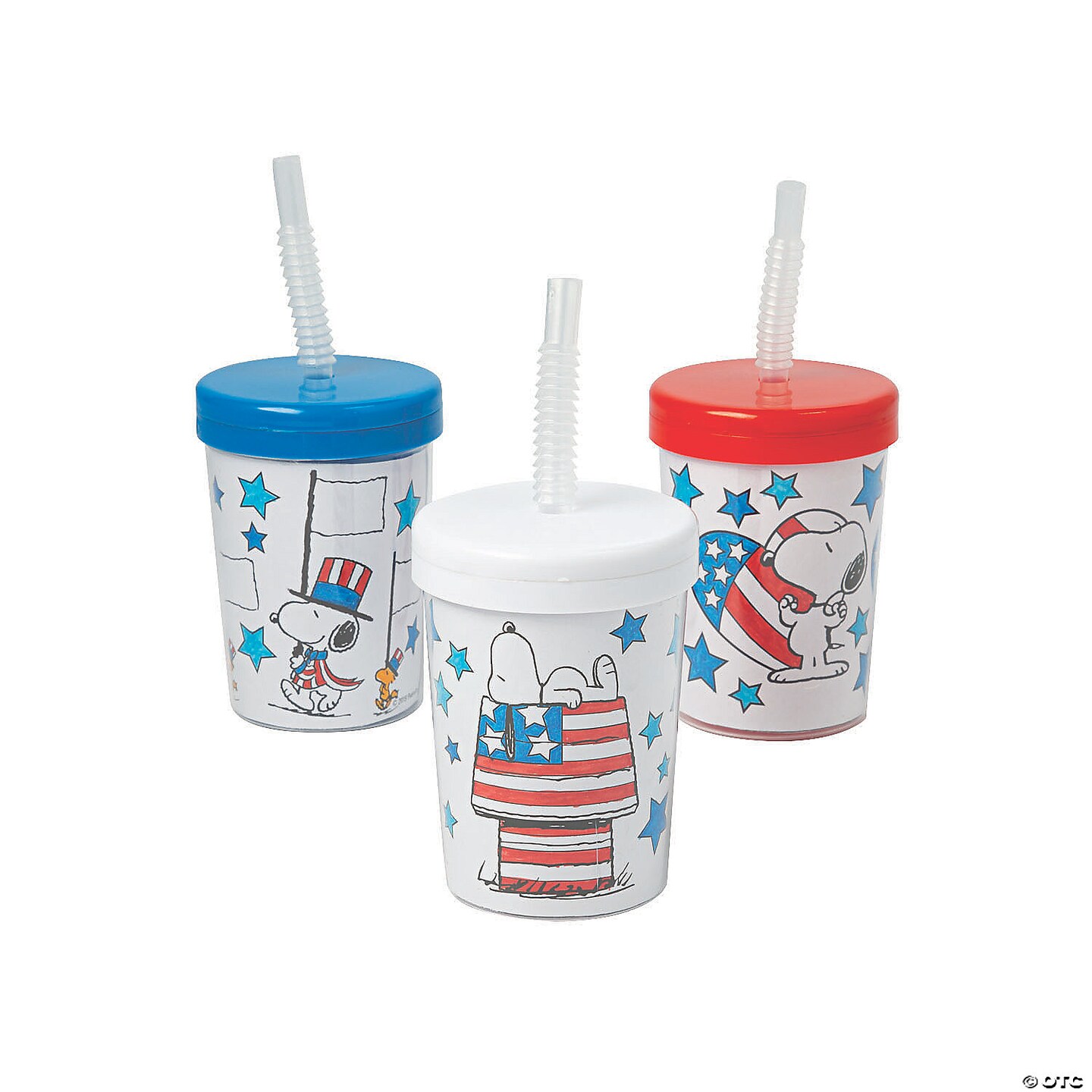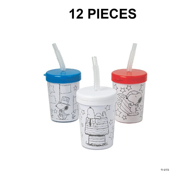 Color Your Own Patriotic Peanuts® BPA-Free Plastic Cups with Lids & Straws - 12 Ct.