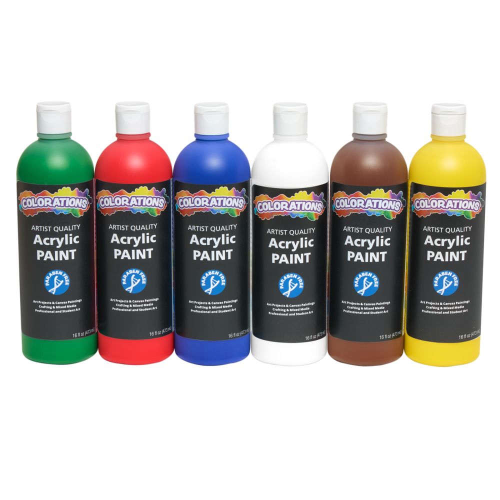 Colorations Artist Quality Acrylic Paint. 6 Primary Colors.16 oz Each (473ml) Made in United States, Paraben-Free, Non-Toxic, Acrylic Paint for Adults and Kids