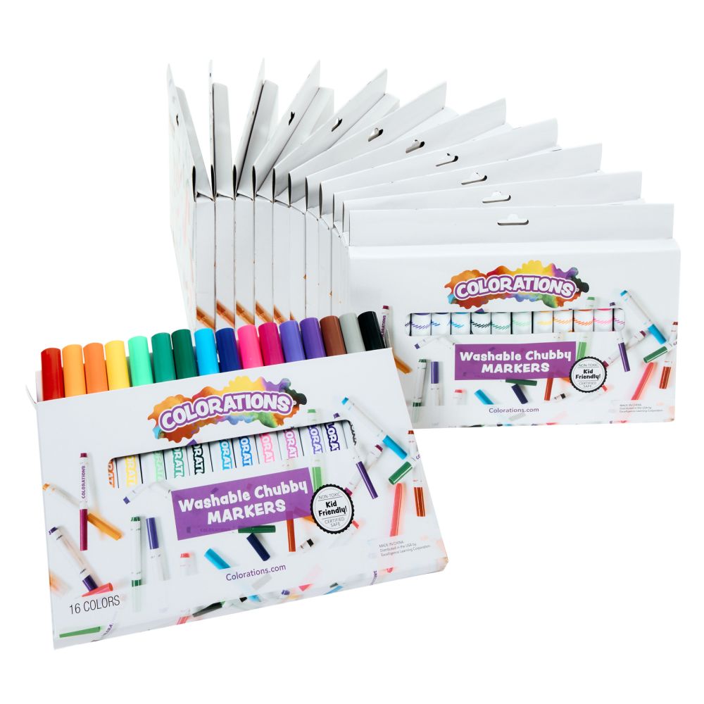 Colorations Chubby Markers - 12 Packs, 16 Colors Each, Set of 192 Total - Bulk School Supplies, Individual Boxes for Kids, Party Favors