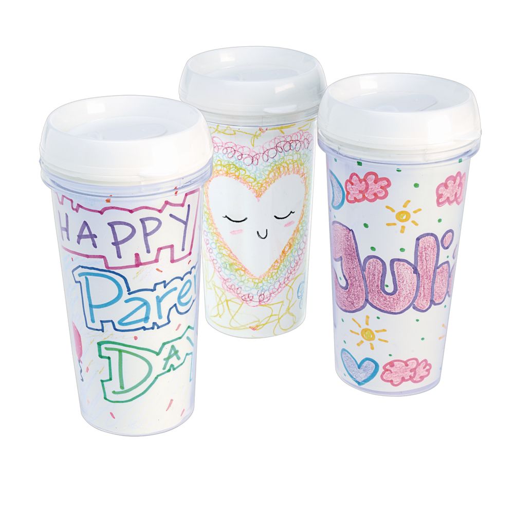 Colorations Design Your Own Travel Mugs, Pack of 12, Arts and Crafts Project, ideal craft gift, father's day, mother's day, holiday gift, grandparent's day
