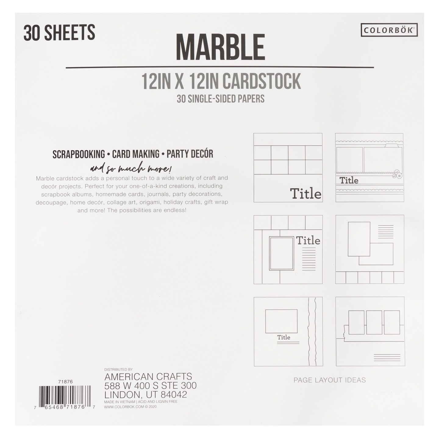 Colorbok 78lb Single-Sided Printed Cardstock 12"X12" 30/Pkg-Marble