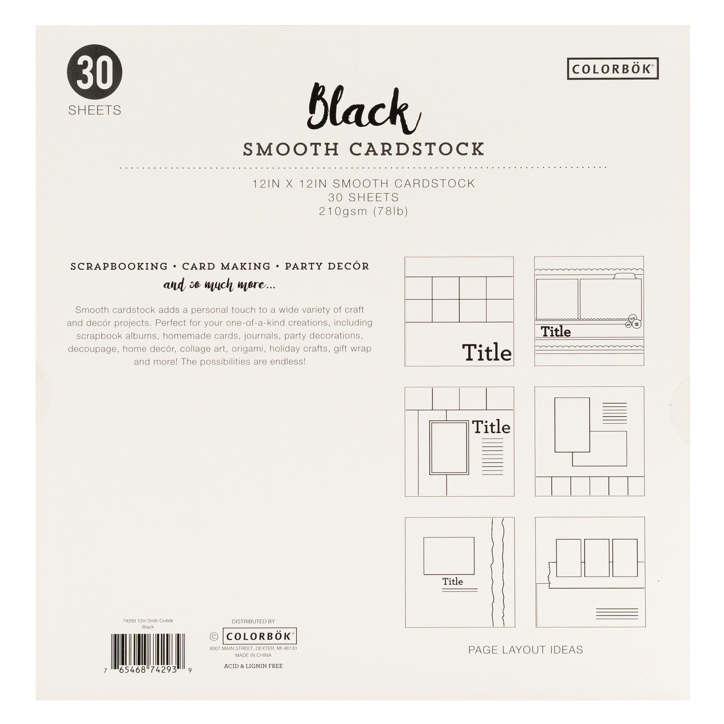 Colorbok 78lb Smooth Cardstock 12"X12" 30/Pkg-Black
