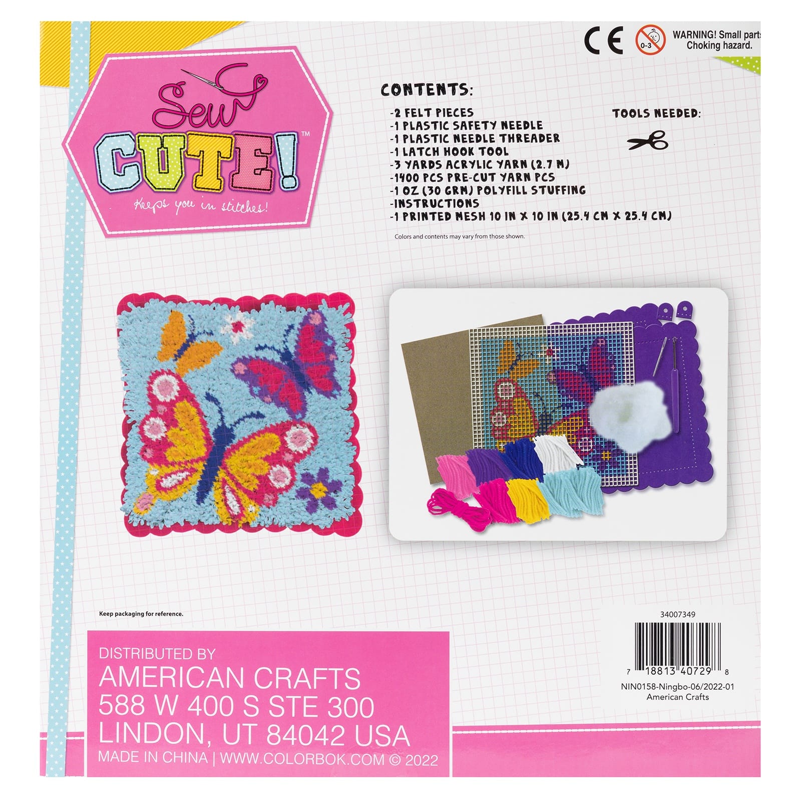 Colorbok® Sew Cute! ™ Butterflies Latch Hook Pillow Kit