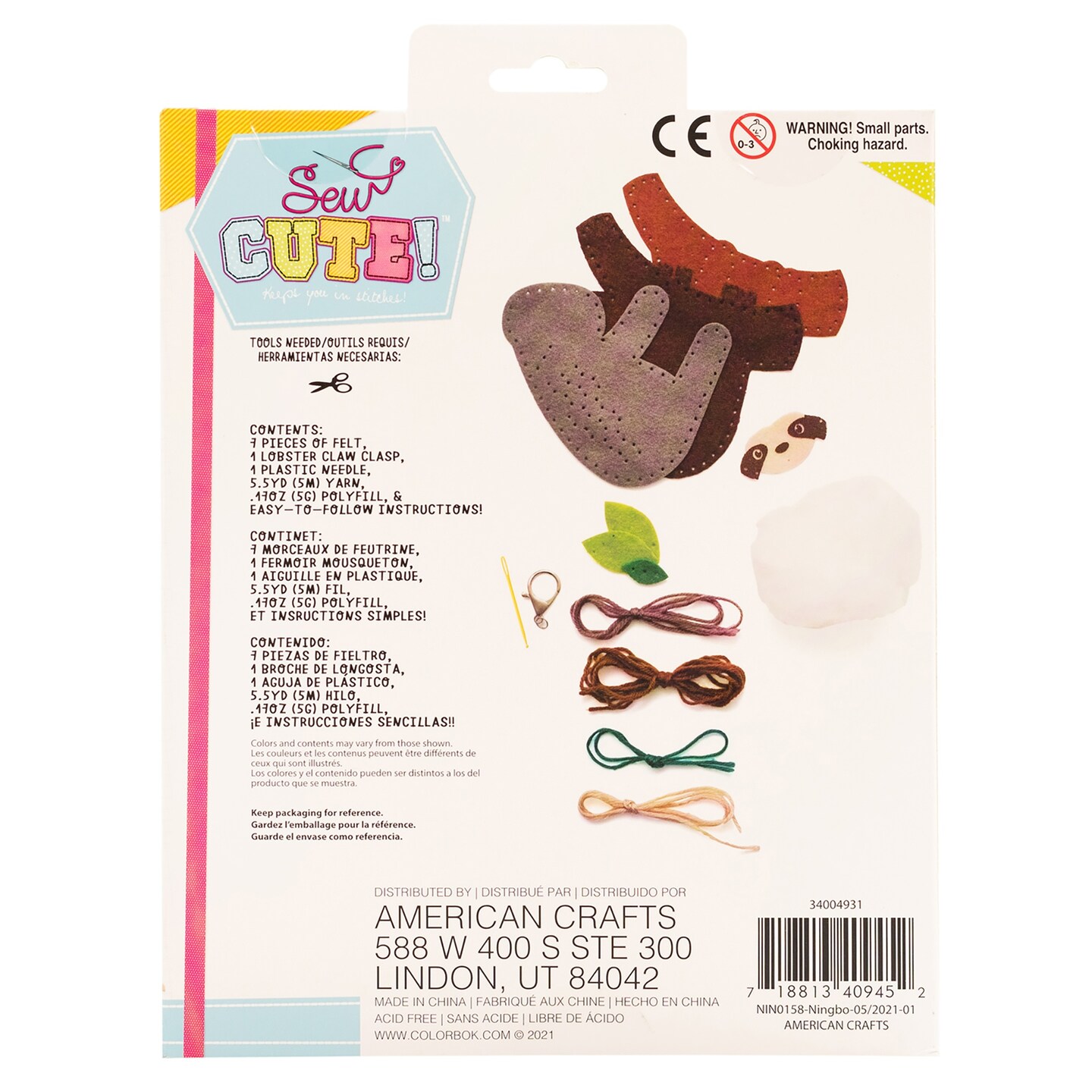 Colorbok Sew Cute! Felt Keychain-Sloth