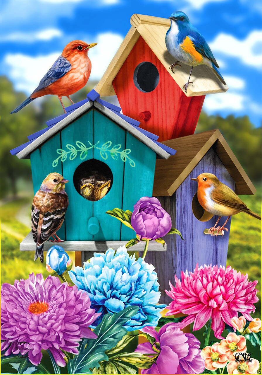 Colorful Birdhouses Spring Garden Flag