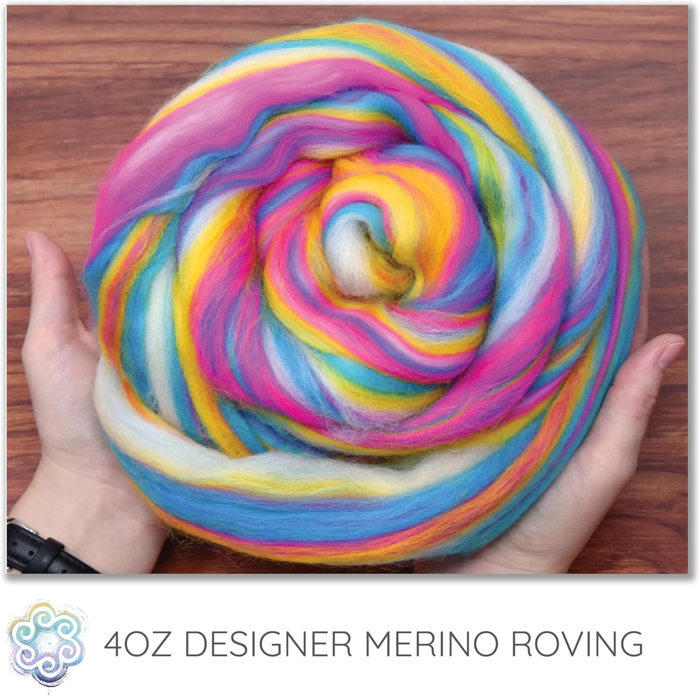 Colorful Designer Merino Wool Combed Top Roving for Spinning and Felting. Limited Edition. Malibu