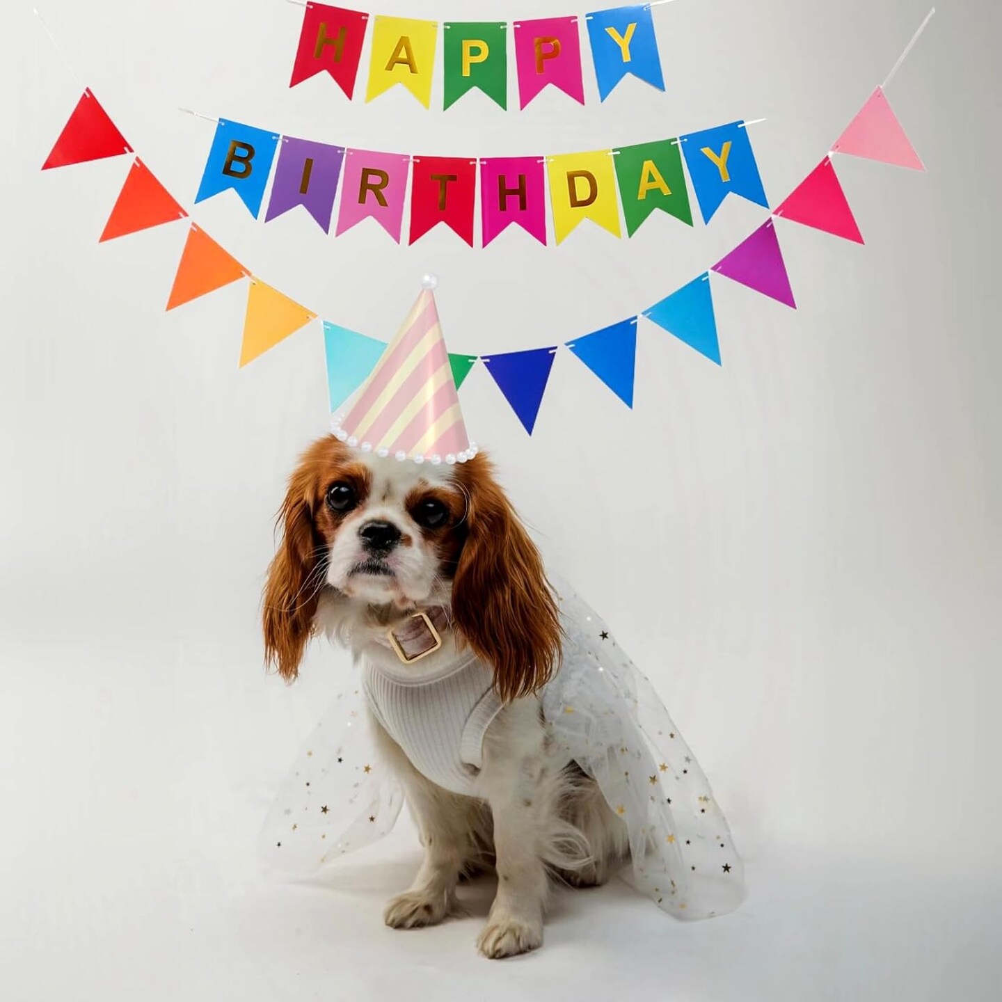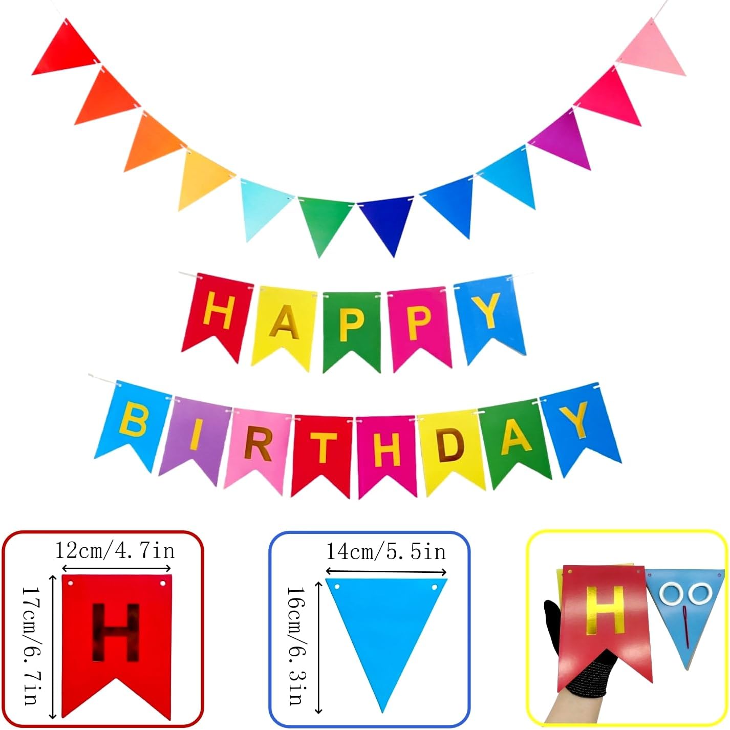 Colorful Happy Birthday Banner with 12pcs Pennant Banner Flags, Rainbow Happy Birthday Sign with Shiny Gold Letters, Party Decorations for Boys Girls, DIY Party Supplies (Multi-color)