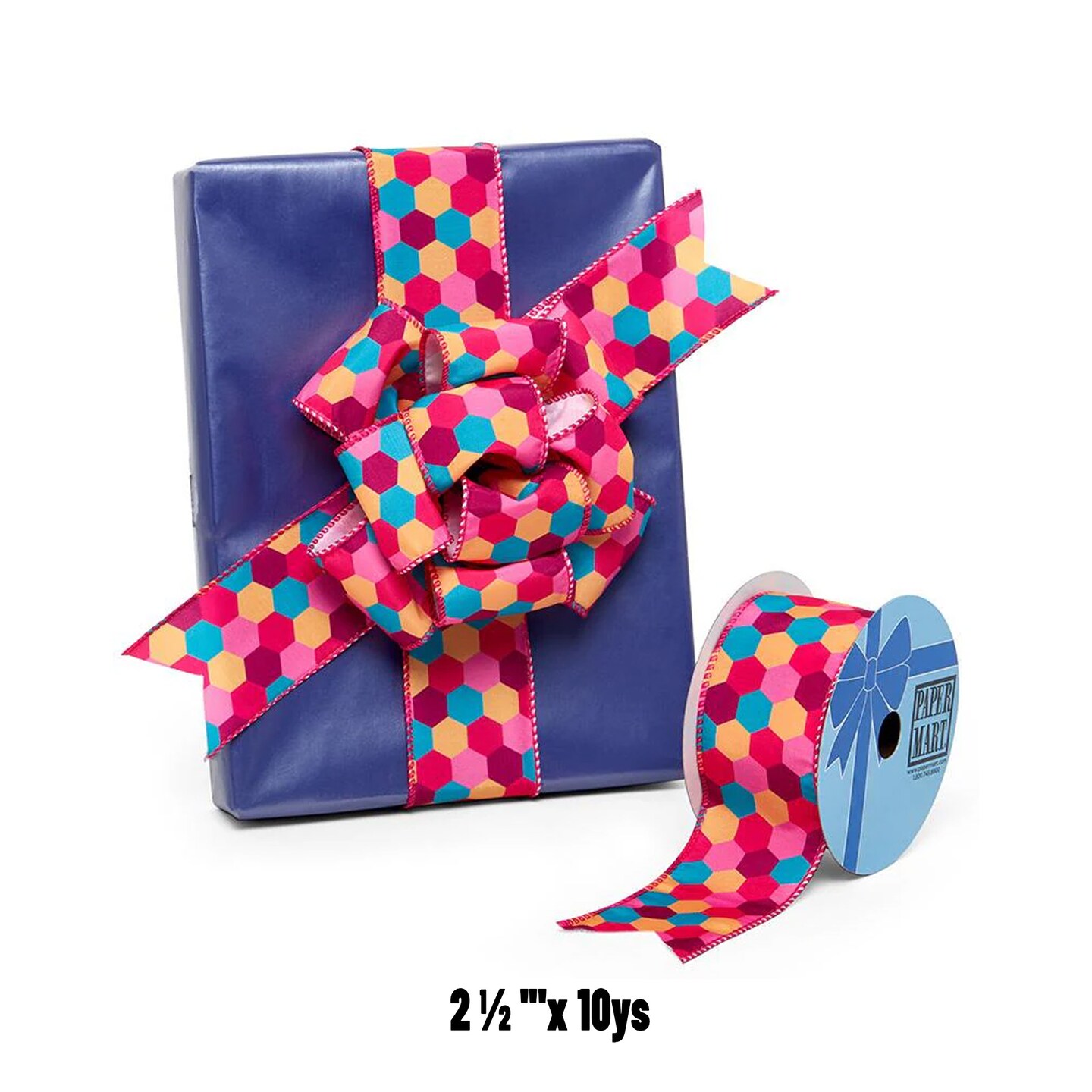 Colorful Hexagon Pattern Wired Ribbon 2.5" x 10 yd