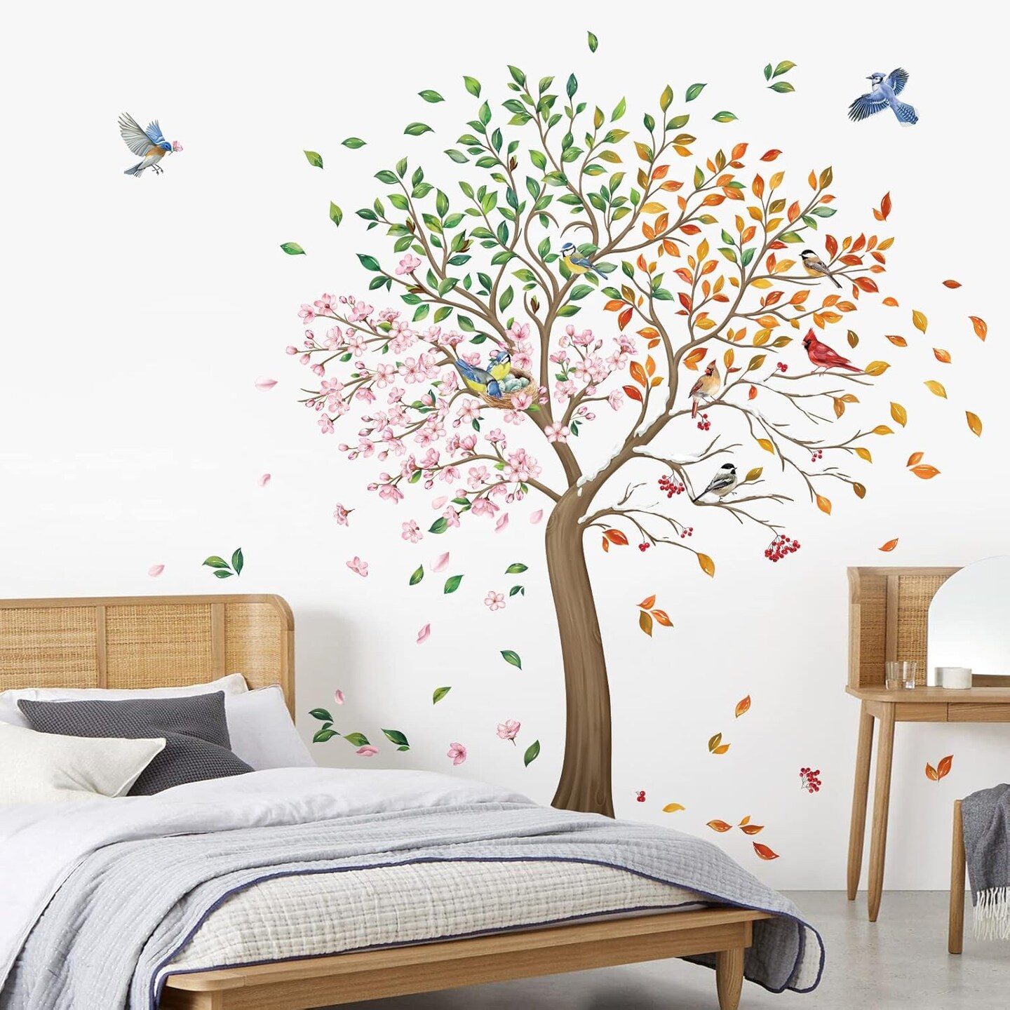 Colorful Large Tree Wall Stickers Tree with Flower Birds Peel and Stick Wall Art Decals(Multi)