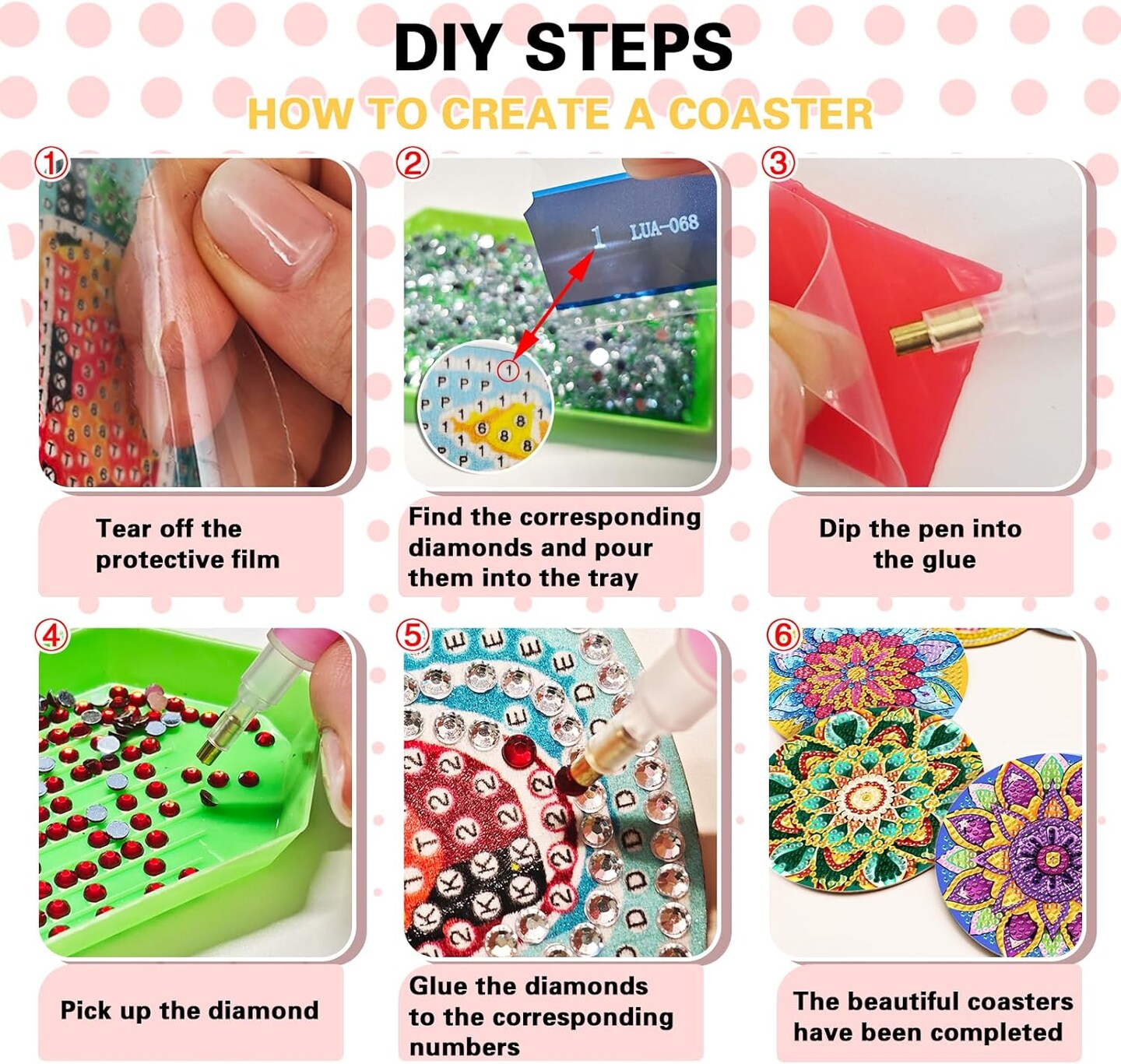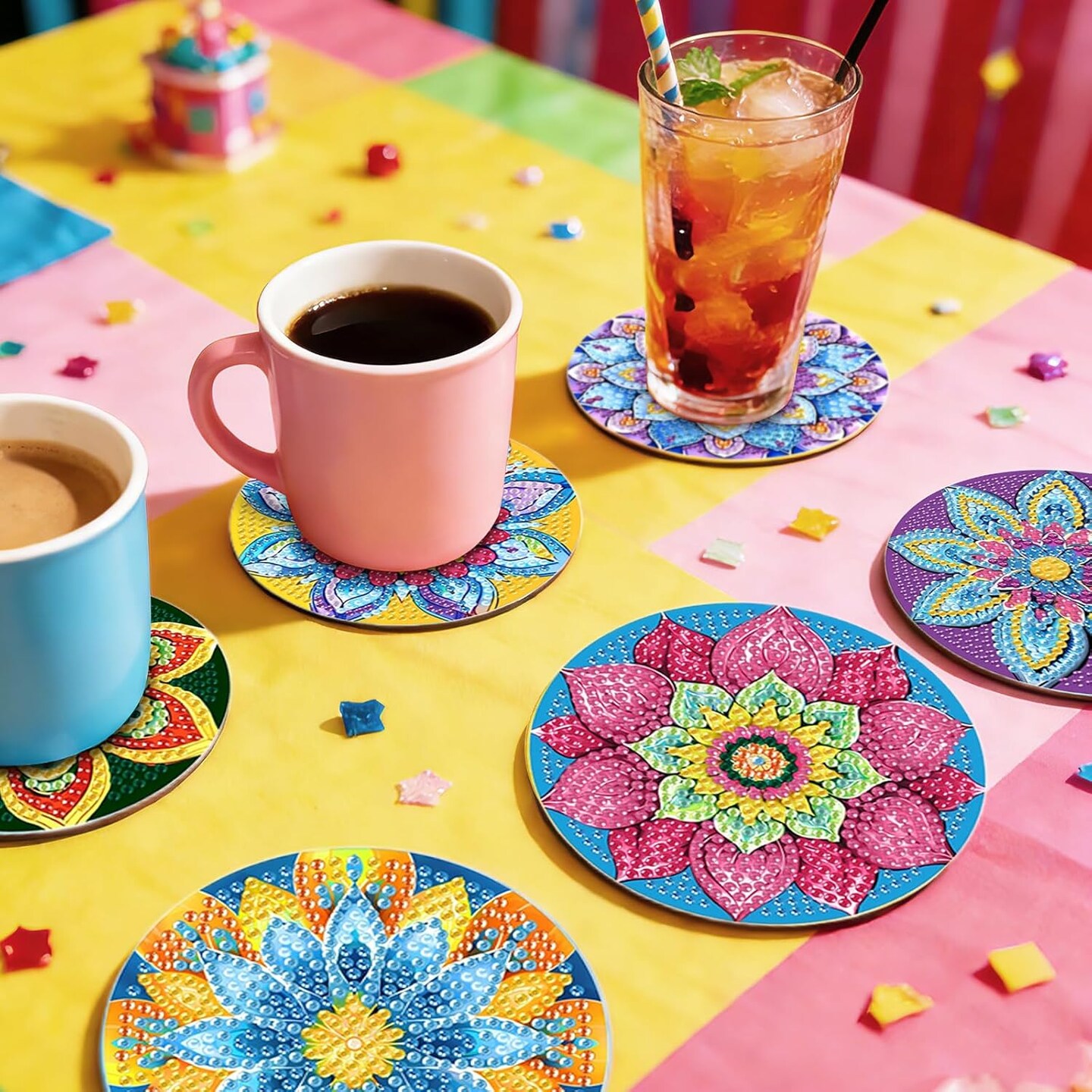 Colorful Mandala Diamond Art Coasters with Holder Set of 8, Floral Diamond Painting Kit Acrylic Drink Coasters Adult DIY Craft, 4'' Non-Slip Coffee Cup Mat Home Kitchen Decor Housewarming Gifts