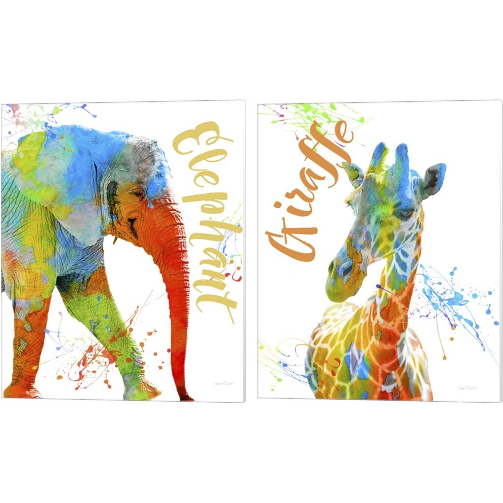 Colorful Safari Animals 2 by Jean Plout 12" x 15" Canvas Wall Art (Set of 2)