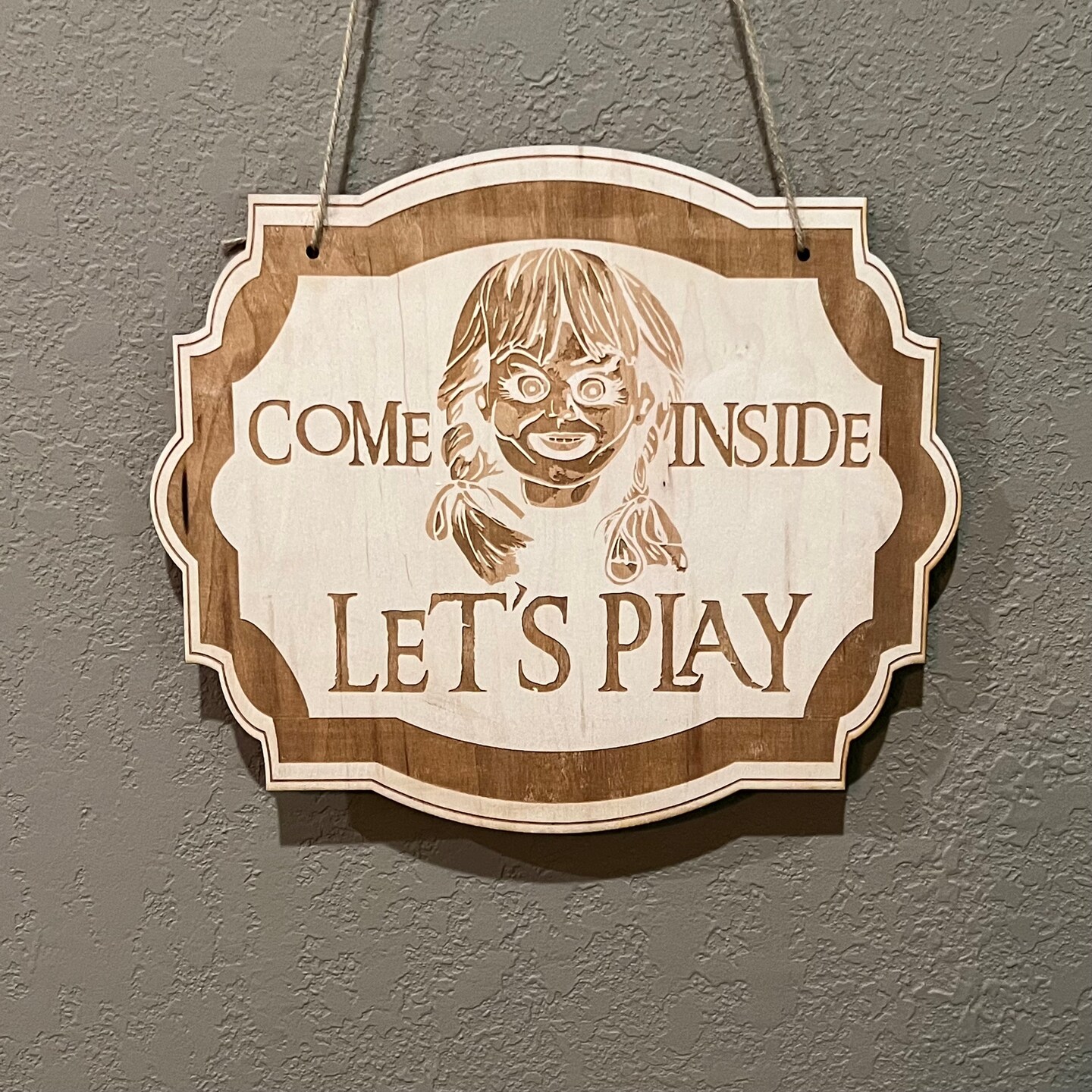 Come In Let's Play - Raw Wood Door Sign