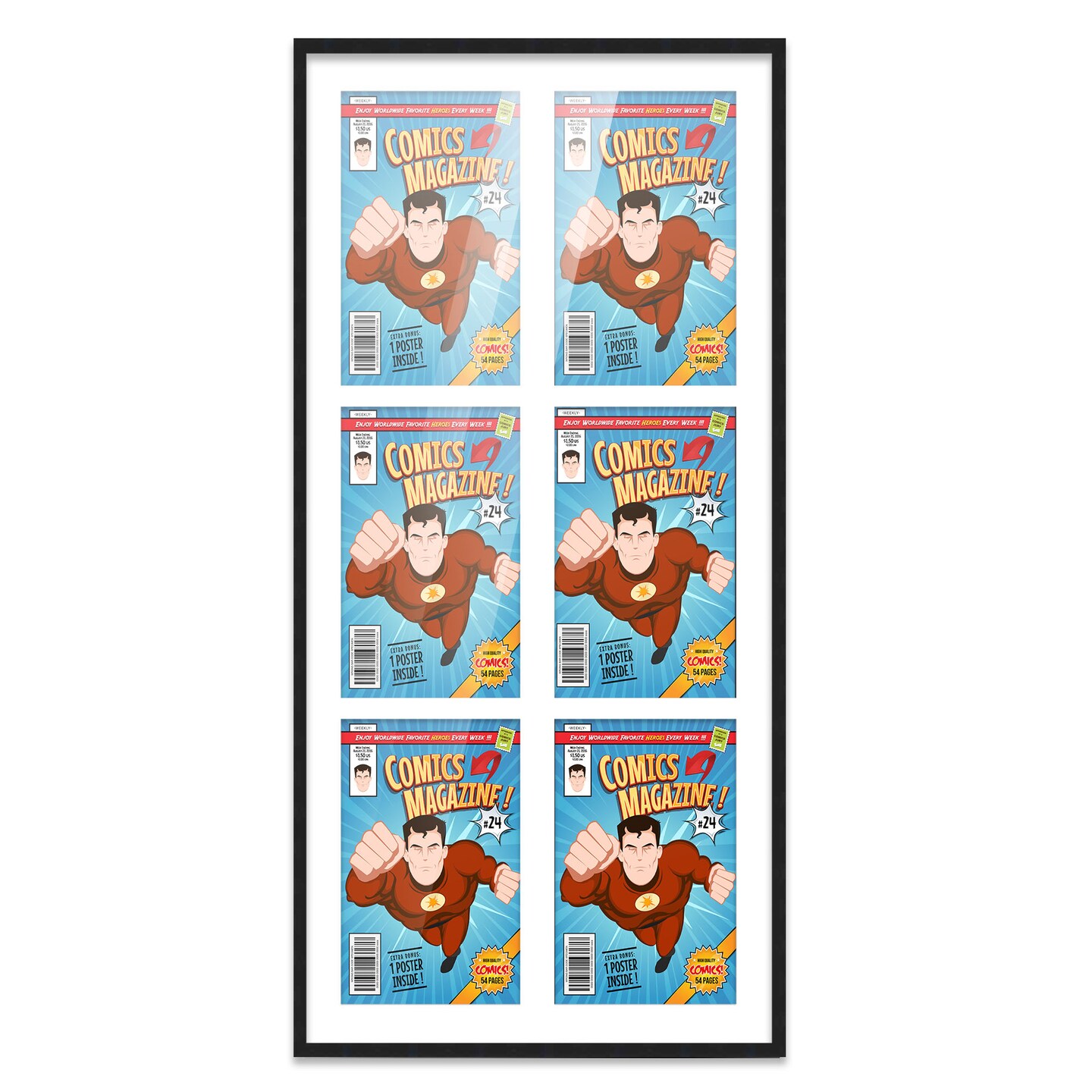 Comic Book Display Frame for Current Era Comic Published After 1985 - Black Wood Comic Frame With White Mat for 6.875x10.5 Comic, 18 Frame Sizes