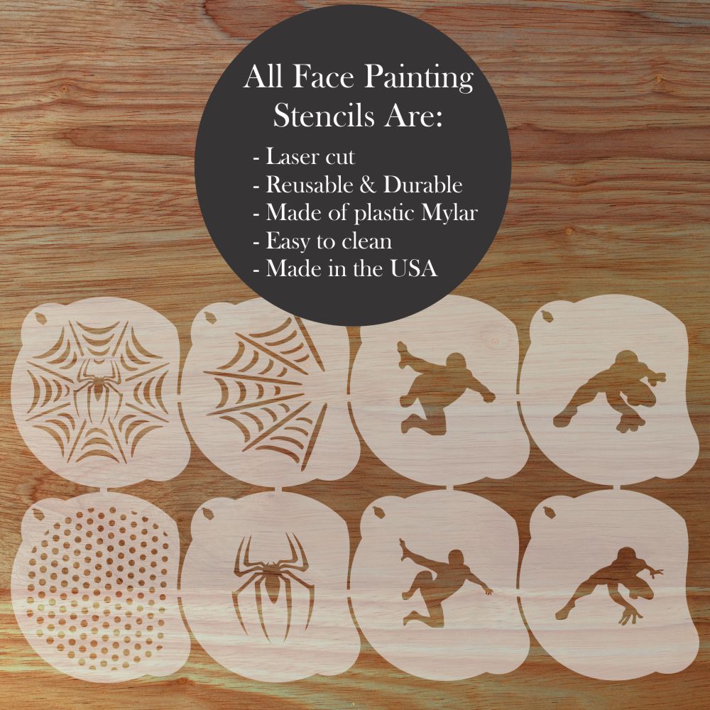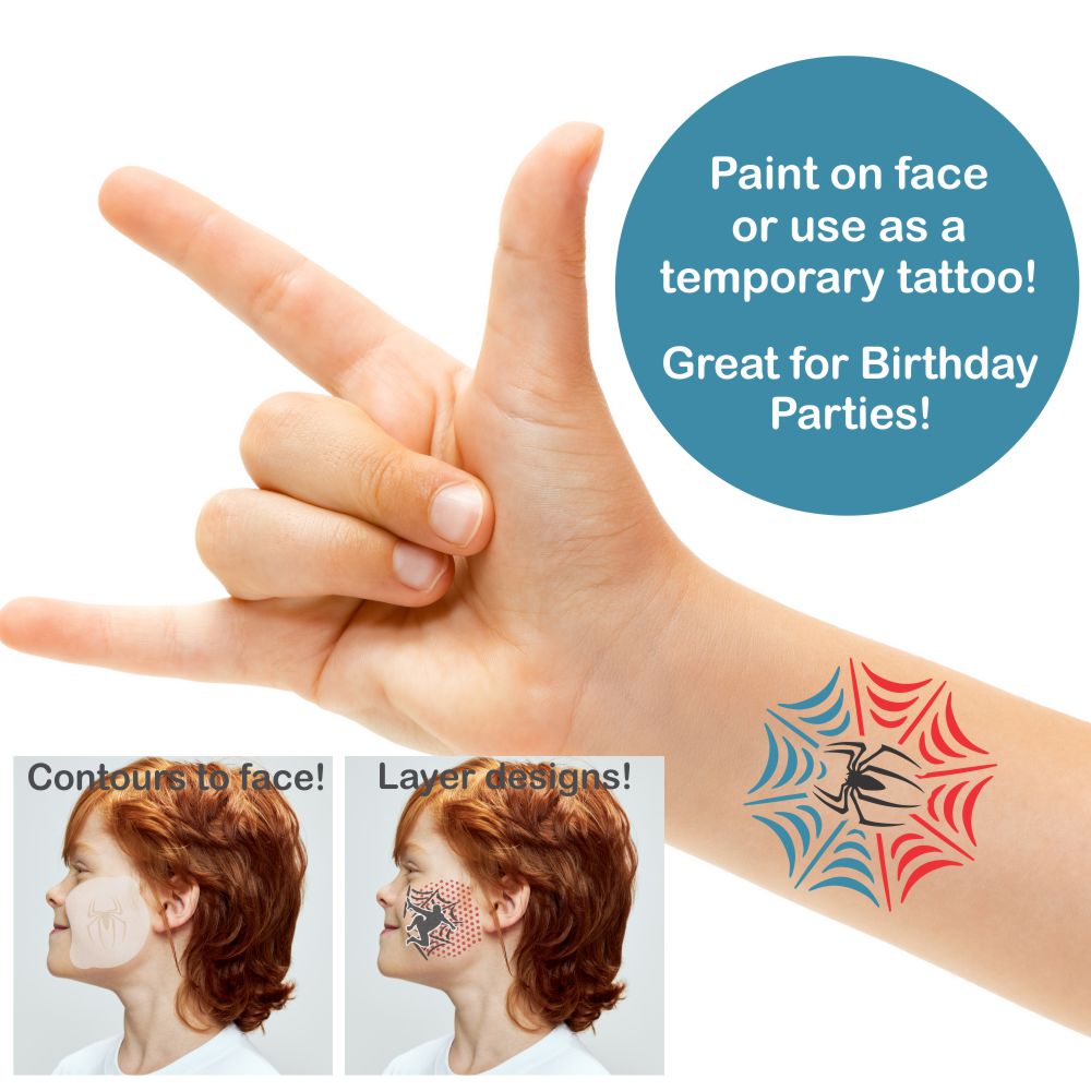 Comic Book Spider Face Painting Stencil Set | Perfect for Face Painting, Temporary Tattoos, Birthday Party | Designer Stencils |