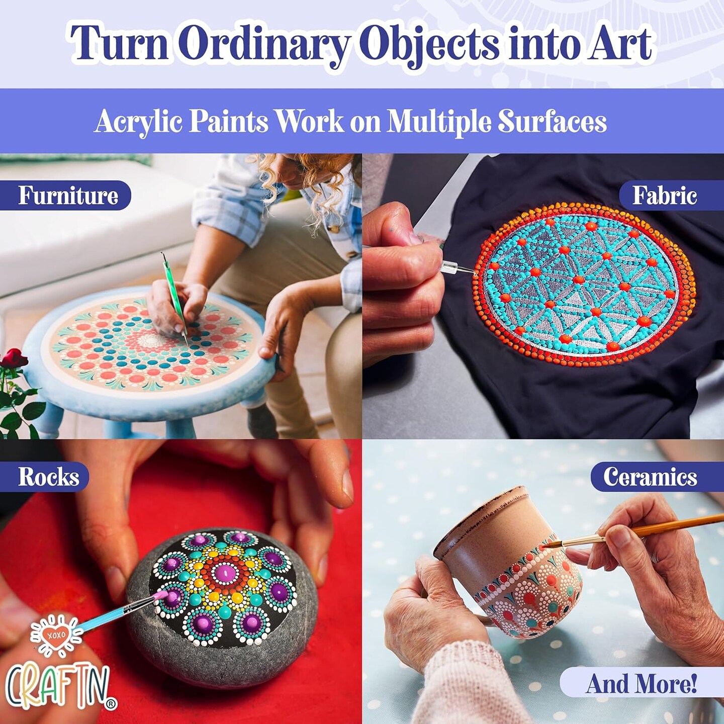 Complete Beginner's Mandala Painting 46 Piece Kit with Acrylic Paints, Reusable Stencils and Dotting Tools. Fun Rock Art & DIY Craft Project. Starter Activity Pack and Gift for Teens, and Adults