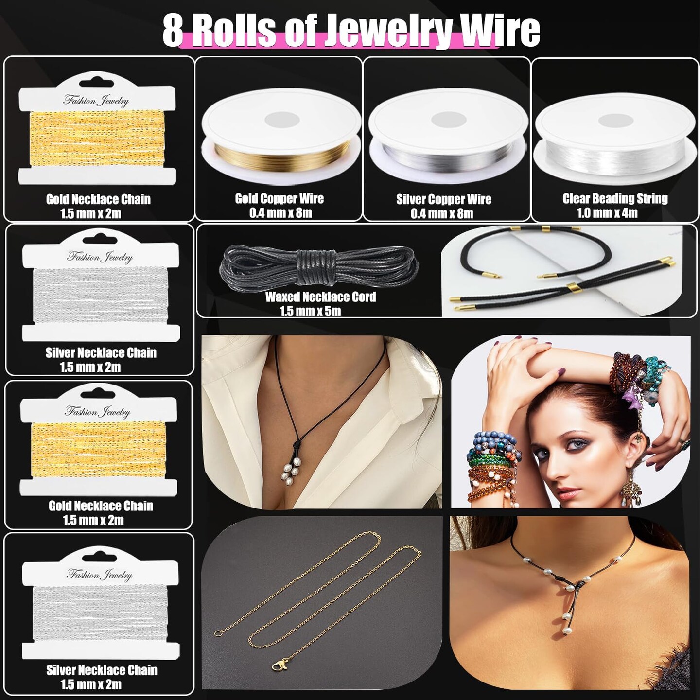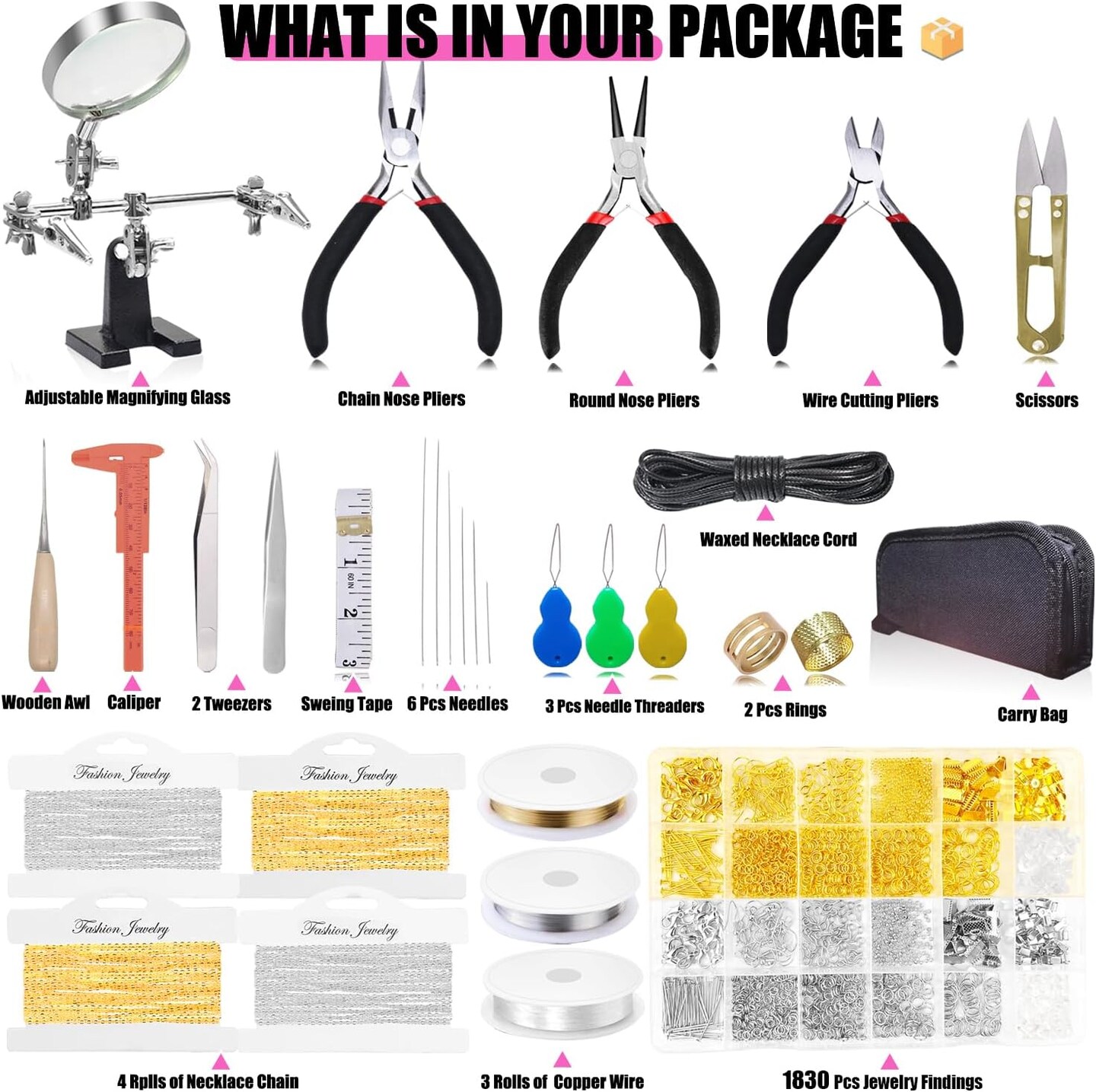 Complete Jewelry Making Supplies Kit – 1900+ Pieces with Jewelry Tools, Findings, Chains, Wires & Adjustable Magnifier | DIY Jewelry Repair & Craft Kit with Carry Bag