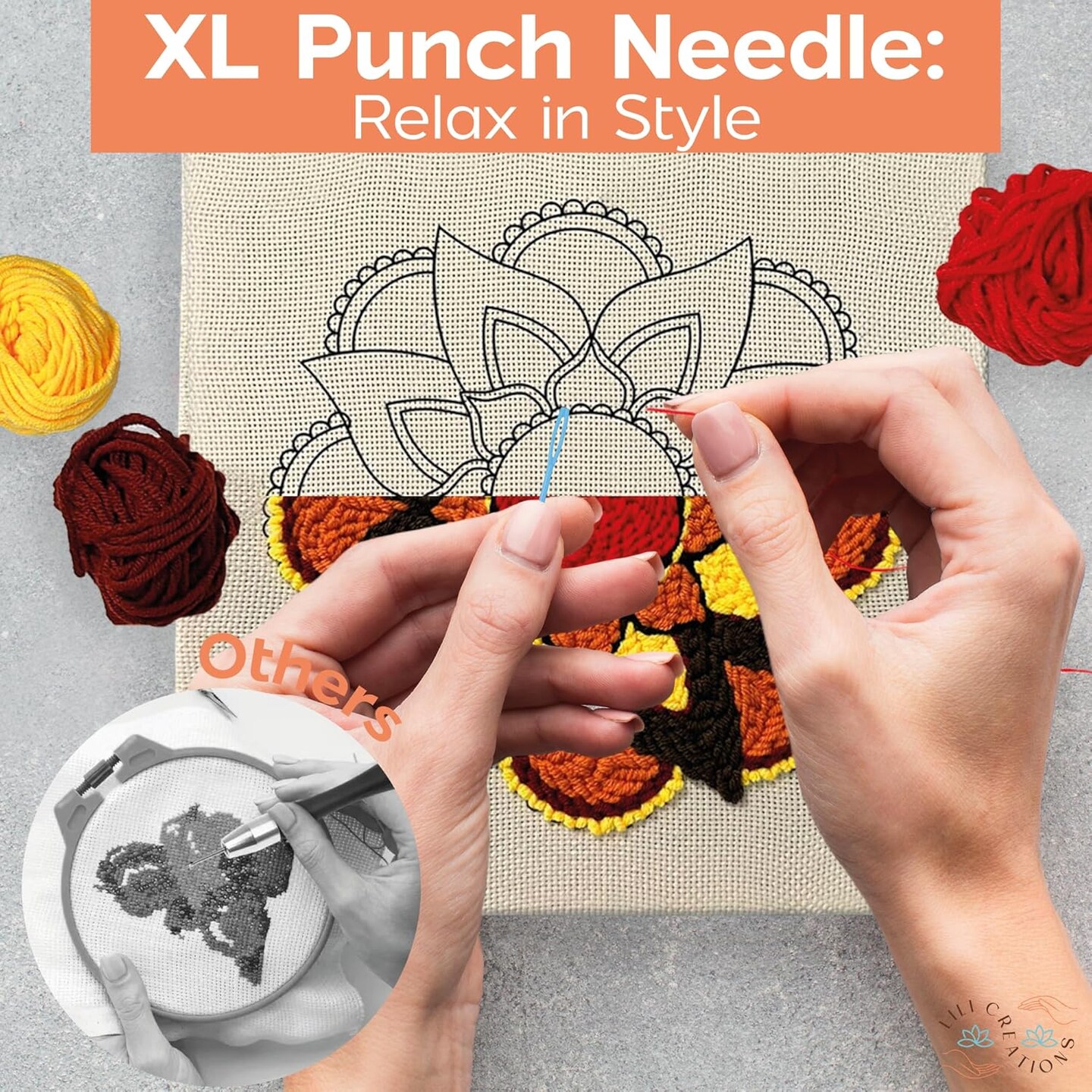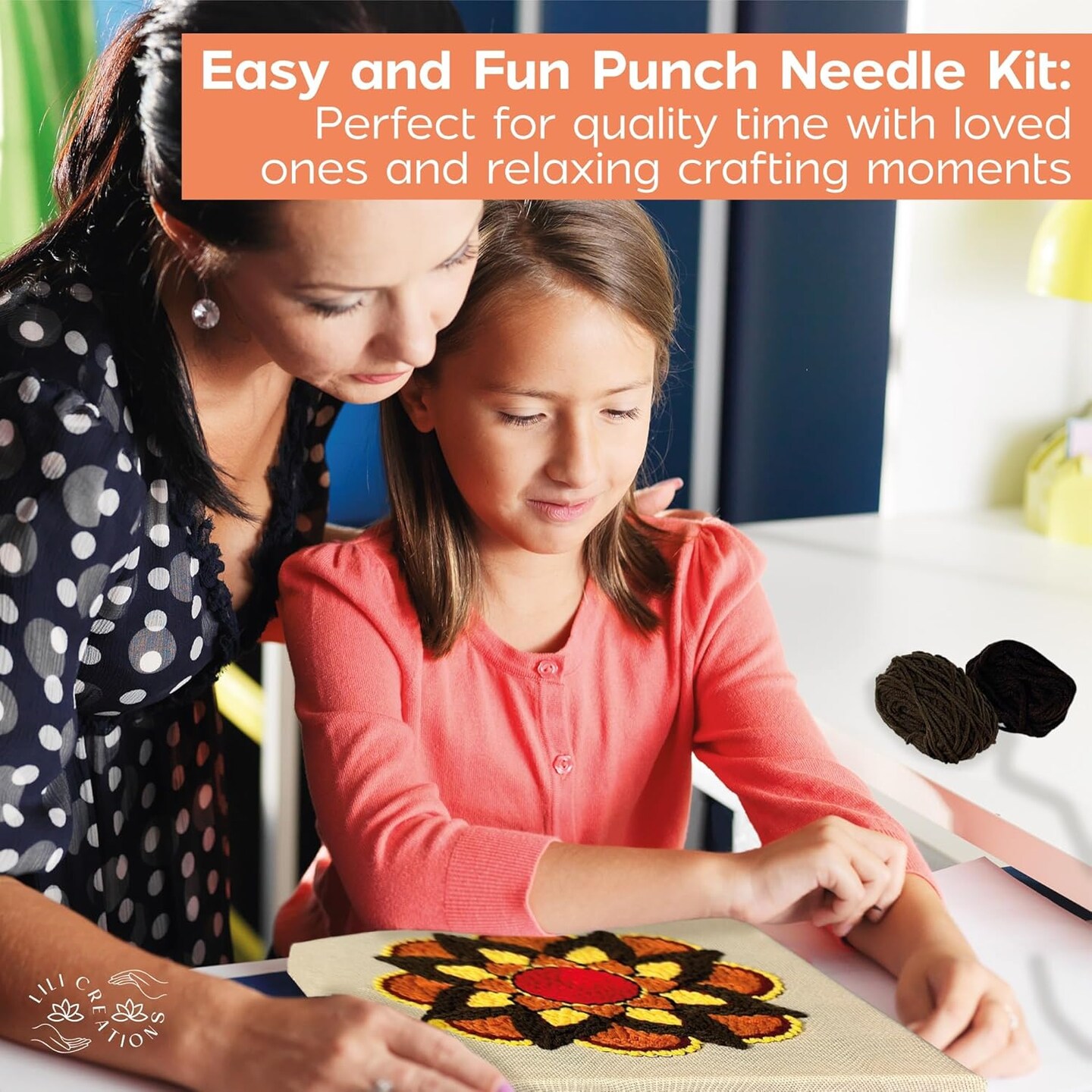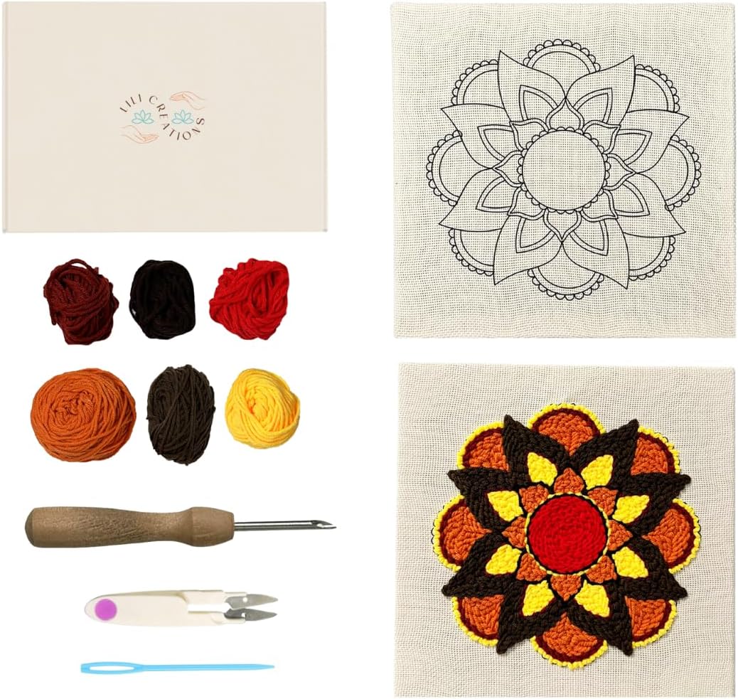 Complete Punch Needle Kit for Beginners & Adults – DIY Embroidery Set with Yarn, Canvas & Tools, Relaxing Craft for Home Décor, Art, & Holiday Gifts
