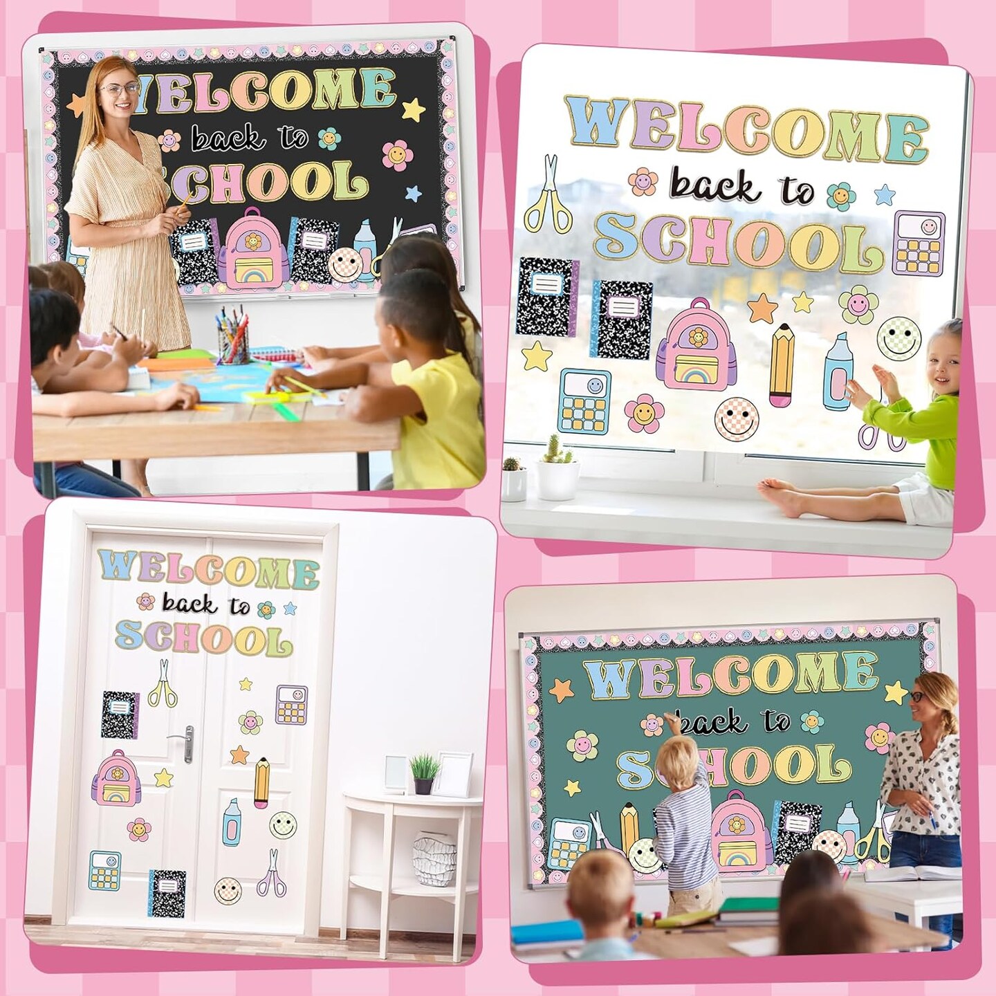 Composition Notebook Classroom Decor – Welcome Back to School Bulletin Board Set with Colorful Smile Face Paper Cutouts for Wall, Door, and Classroom
