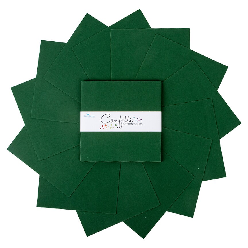 Confetti Cotton 10" Square Pack (Layer Cake / 10" Stacker) in Christmas Green by Riley Blake (10-120-CHRISTMAS-42)